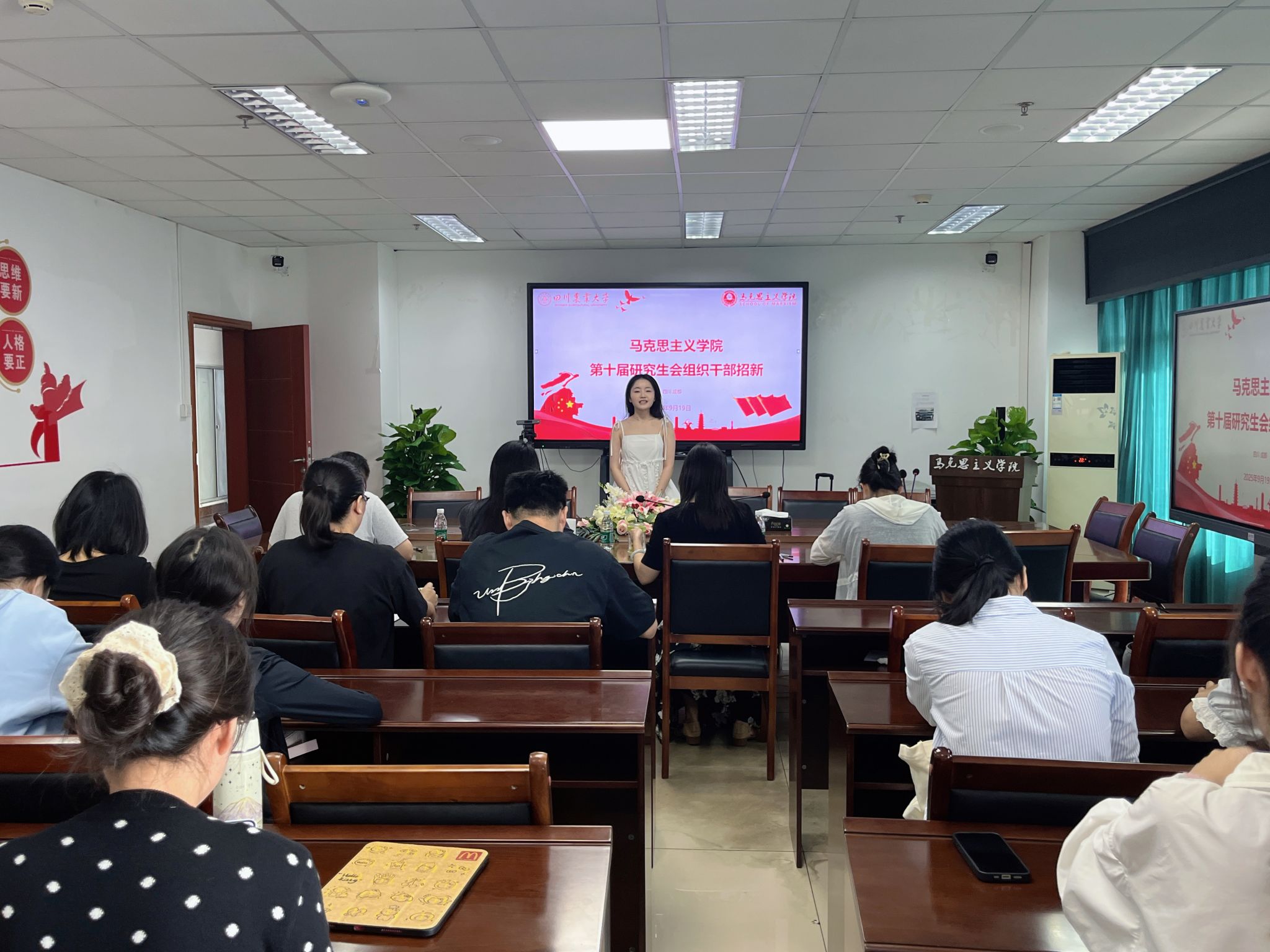 为加强学院团学组织建设,推进学院学生工作高质量发展,9月19日上午,学院研究生会联合党团服务中心在7教1607会议室进行招新面试。学院党政办老师以及党团服务中心、研究生会主要学生干部参与招新评审,30余名2025级新生报名参与面试。