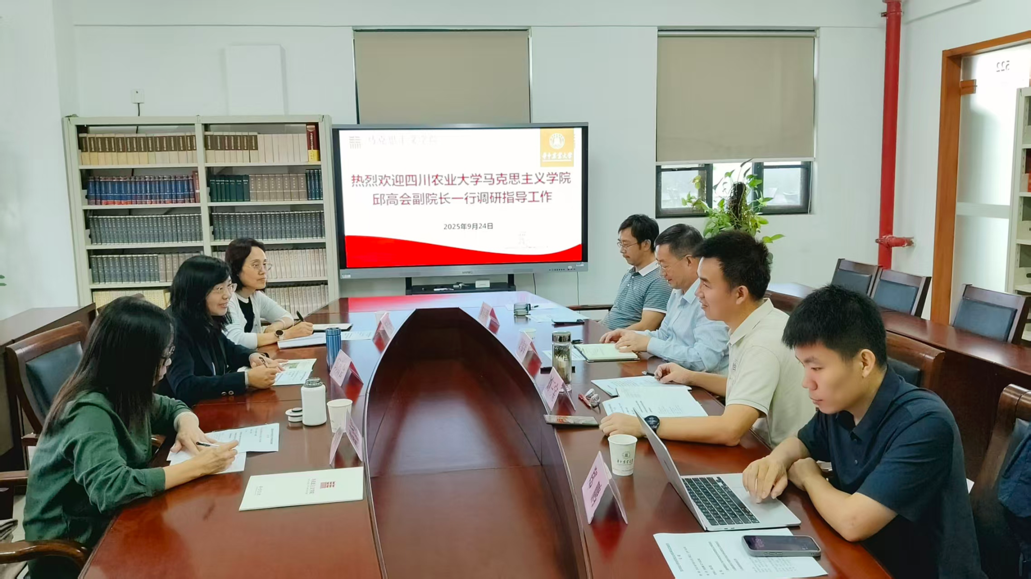 为深入学习贯彻习近平总书记关于加强新时代马克思主义学院建设和发展要求,进一步推进思政课改革创新,提升马克思主义理论学科专业建设水平,全面推动学院高质量发展,9月23日至24日,学院副院长邱高会、思想道德与法治教研室主任李晓辉、党政办主任陈金军等一行3人,先后赴武汉大学马克思主义学院、华中农业大学马克思主义学院开展调研交流。