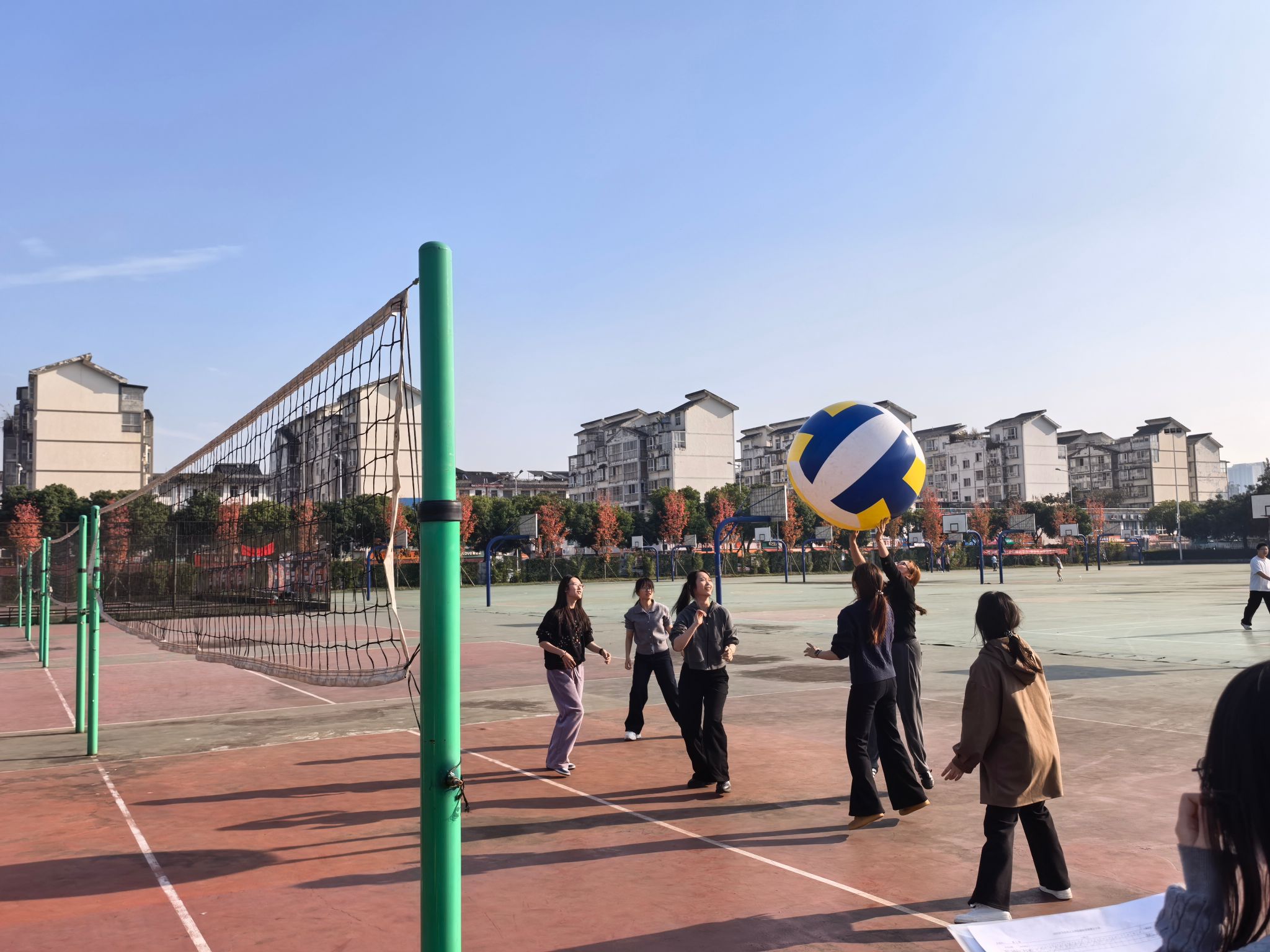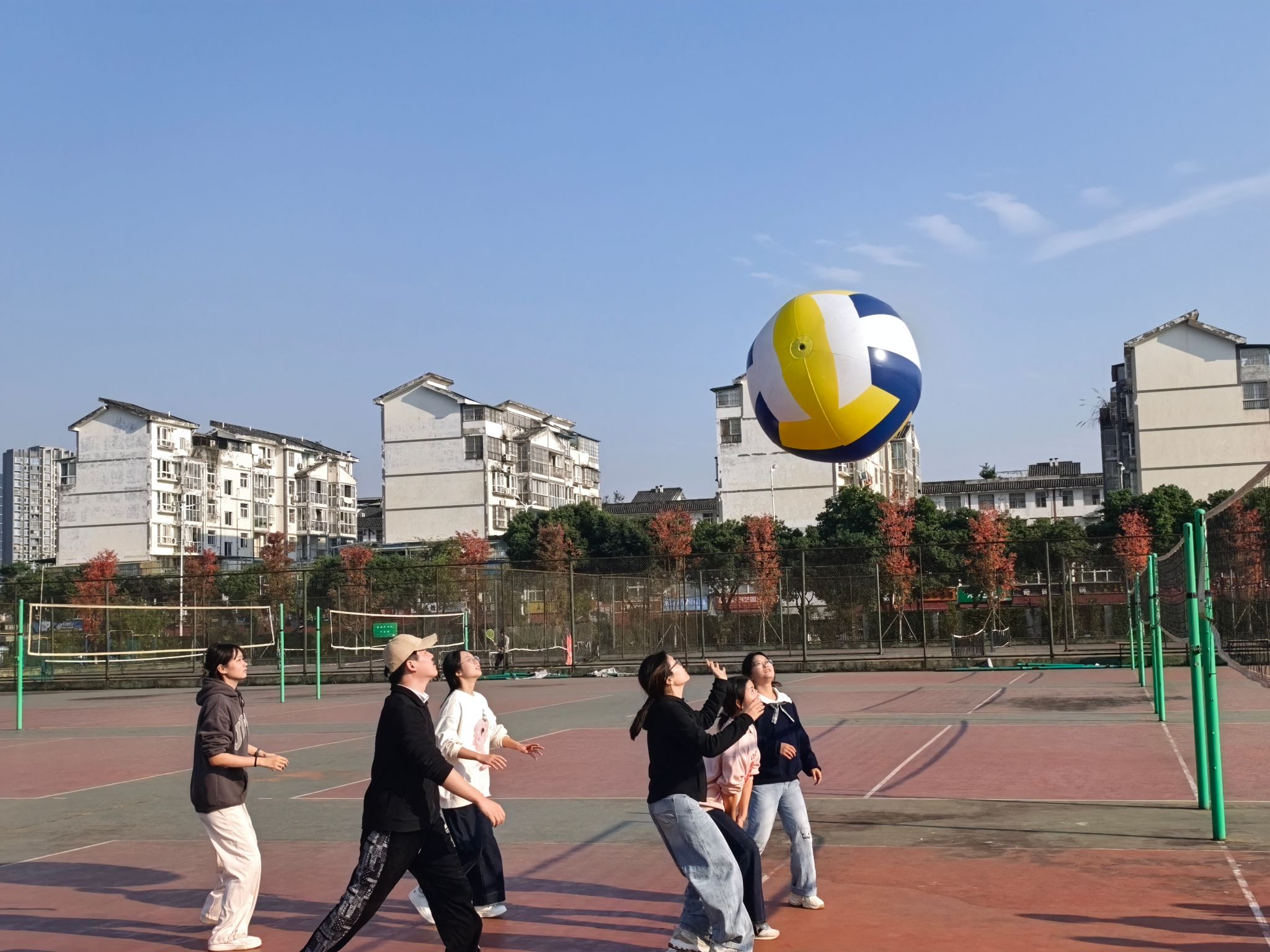 冬日沐暖阳,运动悦青春。为丰富研究生课余生活,增强班级凝聚力,在趣味运动中促进学生身心健康发展,11月20日下午,马克思主义学院研究生趣味排球赛在成都校区排球场火热开赛。2024级、2025级研究生踊跃组队参与,学院党委书记颜怀坤前往赛场为同学们加油鼓劲,现场活动氛围热烈。