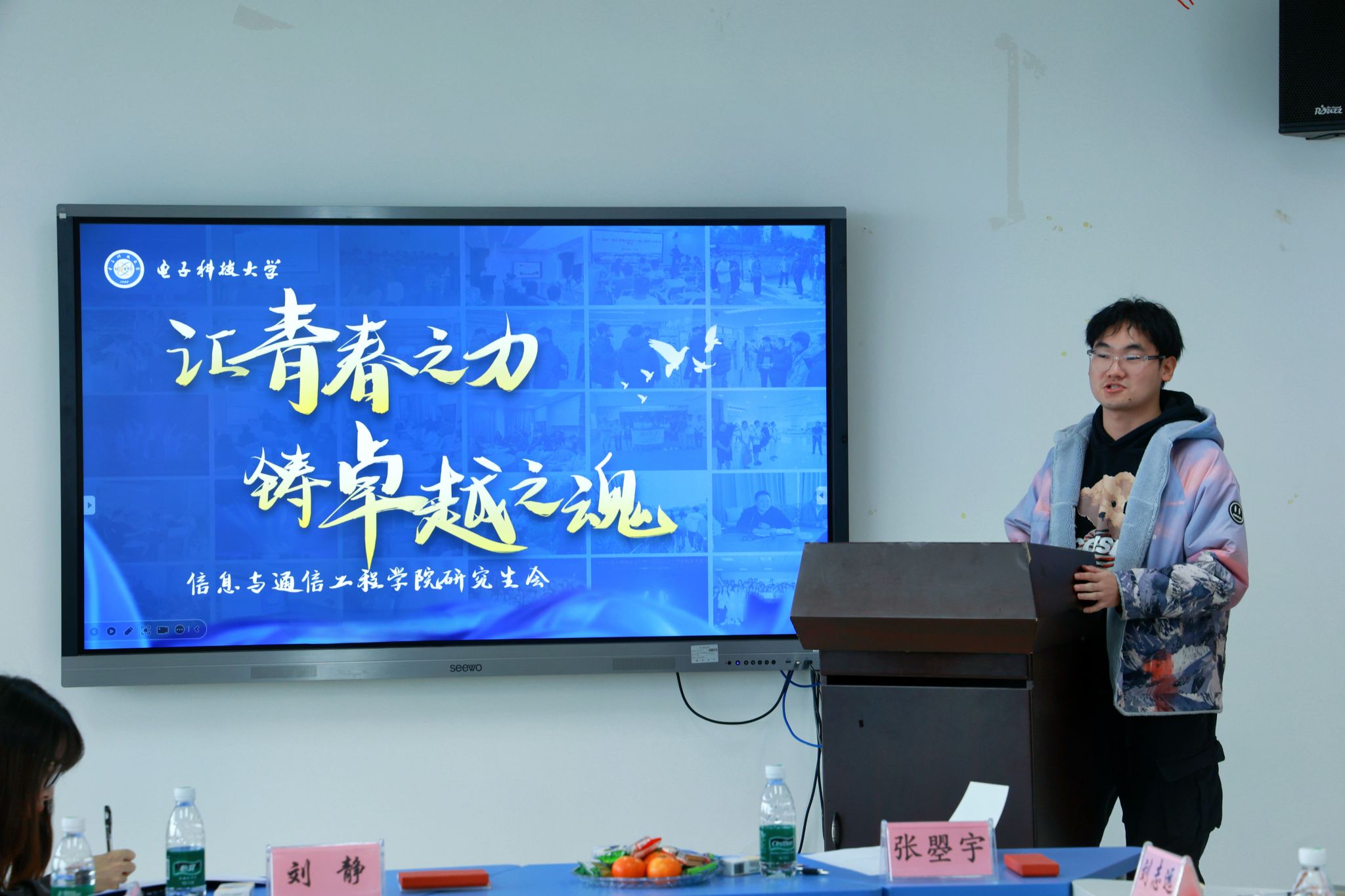 在院系工作分享环节,学院研究生会主席团成员刘静系统分享了研会组织架构与特色工作,介绍了研会组织聚焦“服务同学、成就同学”理念,围绕思想引领、心理健康、就业服务、文体实践等方面所开展的重点工作。随后,电科信通信院研究生会执行主席张曌宇则从整体架构出发,详细介绍了六个部门的职能定位及五育主题活动,展示了“主持礼仪大赛”“花园音乐节”“21天幸福UP”等一系列品牌活动。两院分享内容详实、亮点纷呈,充分展现出学生组织在服务学生成长与推动学院发展中的积极作用。