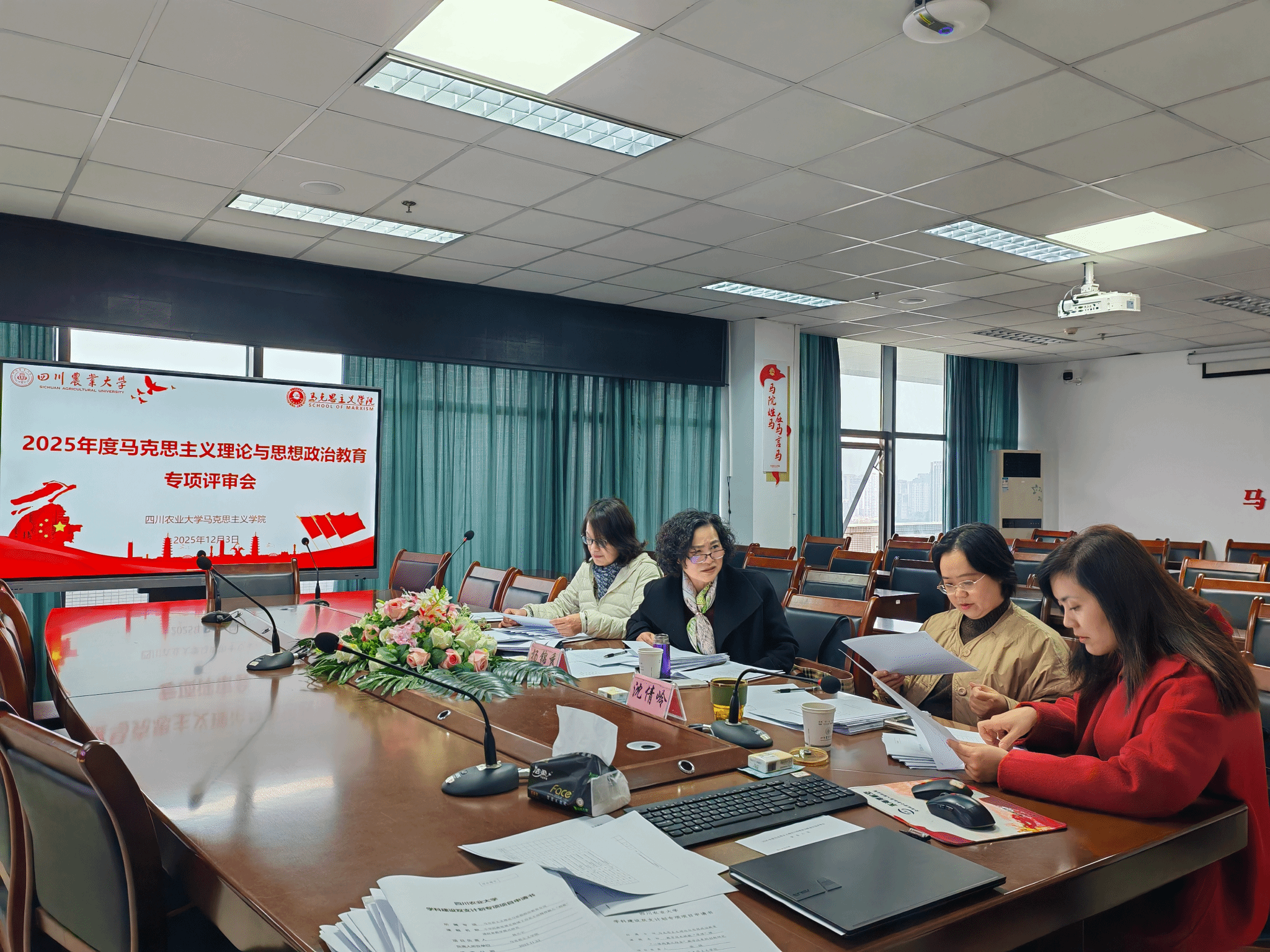 2025年12月3日,马克思主义学院于7教1607召开“2025年度双支计划马克思主义理论与思想政治教育专项”专家评审会。四川农业大学原党委常委杨锦秀教授,马克思主义学院原院长赵晓霞教授,经济学院沈倩岭教授三位专家参与评审工作。会议由学院院长何思妤教授主持。
