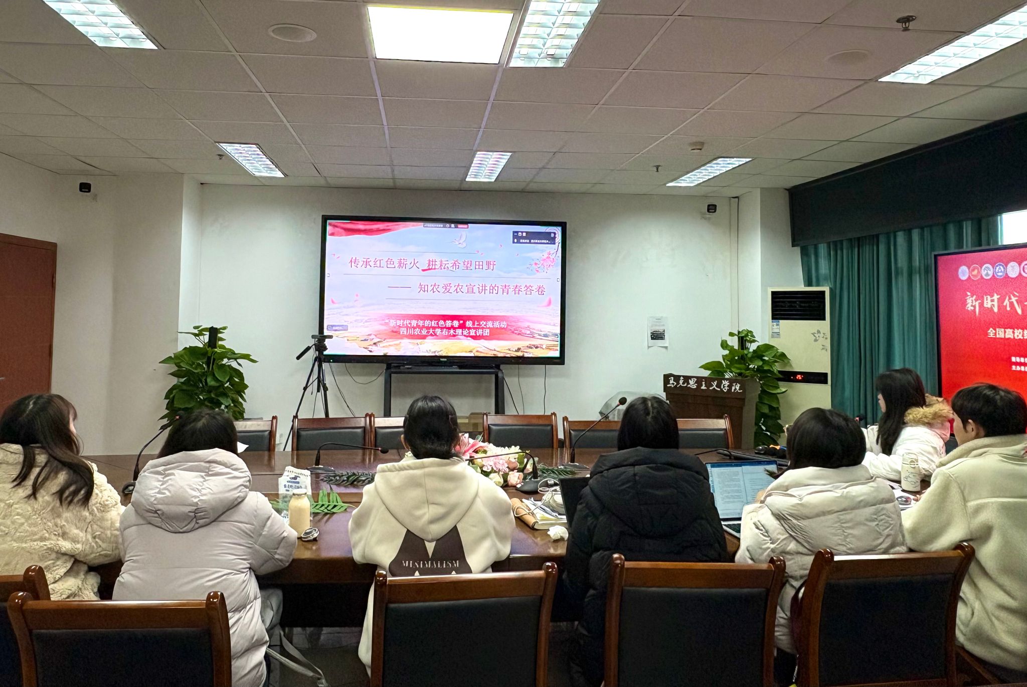 为深入传承红色基因,探索红色宣讲的青年表达与实践路径,12月14日,由中国大学生在线指导,教育部高校思想政治工作队伍培训研修合作研学基地、教育部红色文化弘扬基地等单位联合主办,黑龙江八一农垦大学承办的“新时代青年的红色答卷”全国高校红色精神宣讲团队线上交流活动成功举办。来自全国17所高校的近千名师生云端相聚,共话红色精神的时代传承。四川农业大学右木理论宣讲团以“传承红色薪火 耕耘希望田野”为主题进行经验成果汇报展示,并围绕“让红色宣讲更接地气、更具青年味”进行专题研讨。