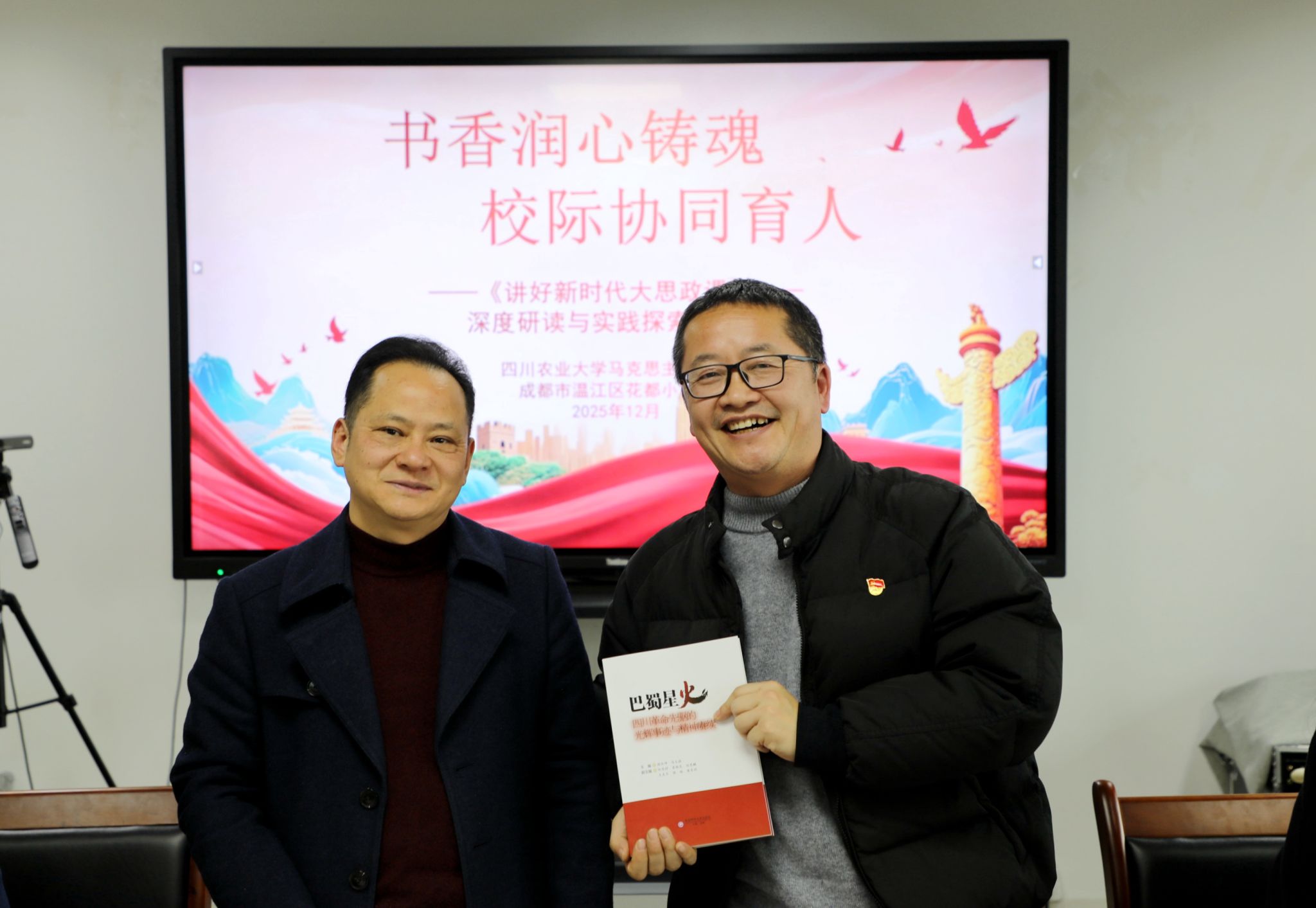 为深入贯彻落实大中小学思政课一体化建设要求,打破学段壁垒,构建校地协同育人新格局,2025年12月26日下午,四川农业大学马克思主义学院与成都市温江区花都小学校联合举办“书香润心铸魂 校际协同育人”——《讲好新时代大思政课》深度研读与实践探索交流会。来自高校、小学的思政教育工作者齐聚四川农业大学成都校区,以理论研读为根基、以实践探索为导向,共话思政课建设新方向,擘画协同育人新篇章。