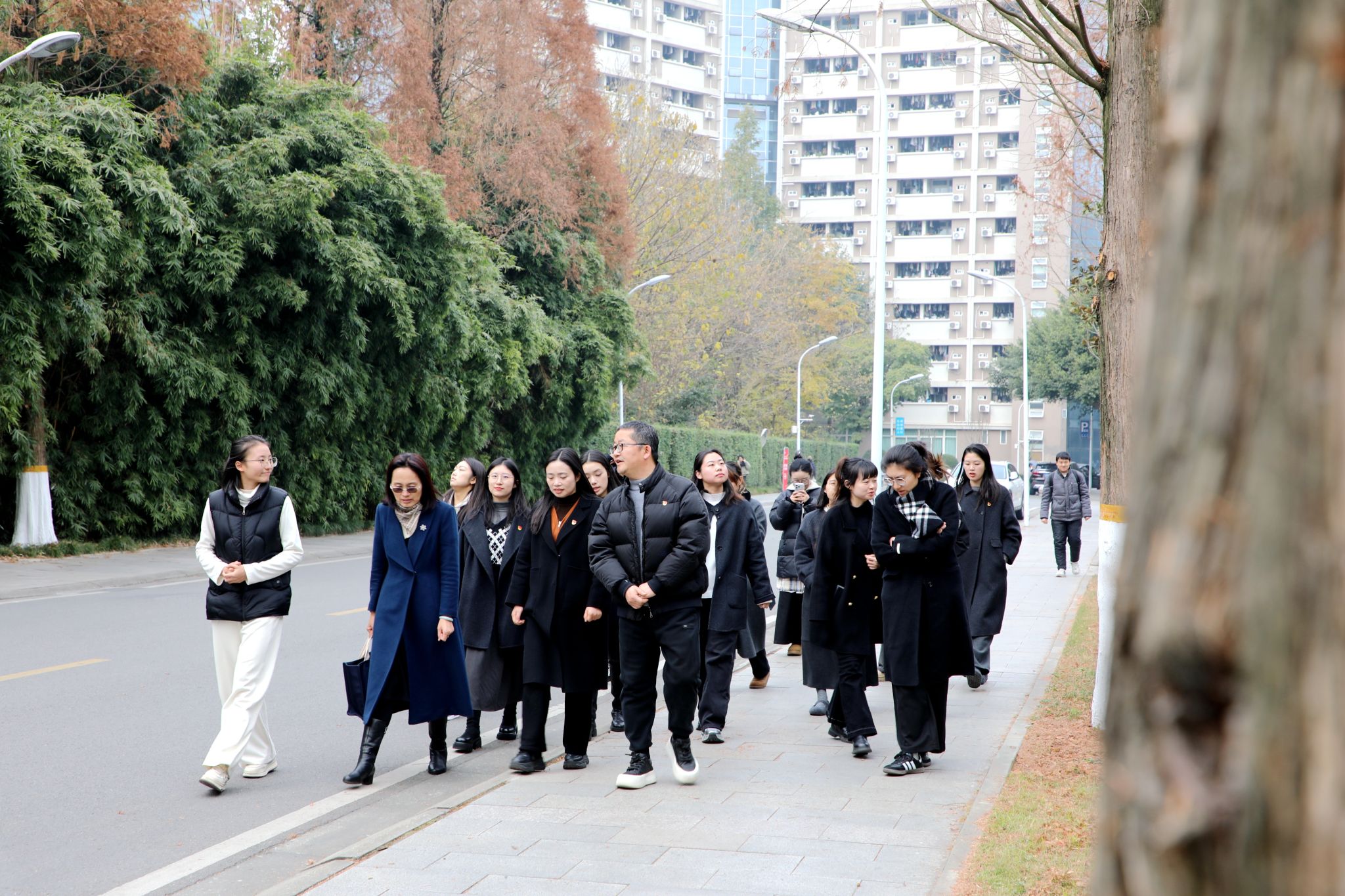 交流会前,学院组织花都小学教师开展沉浸式校园参观活动。沿着东大门至七教的路线,右木理论宣讲团志愿者结合沿途地标,将川农大百余年办学历史、深厚文化基因与思政育人理念深度融合,从承载农耕文明记忆的惠民遗址,到传承红色基因的精神文脉,从彰显科技兴农担当的院士事迹,到践行“爱国敬业,艰苦奋斗,团结拼搏,求实创新”的川农大精神场景,老师们在行走中触摸校园历史温度,直观感受学校“铸魂育人、厚德兴农”的浓厚氛围,为后续深度研讨积累了鲜活实践素材。