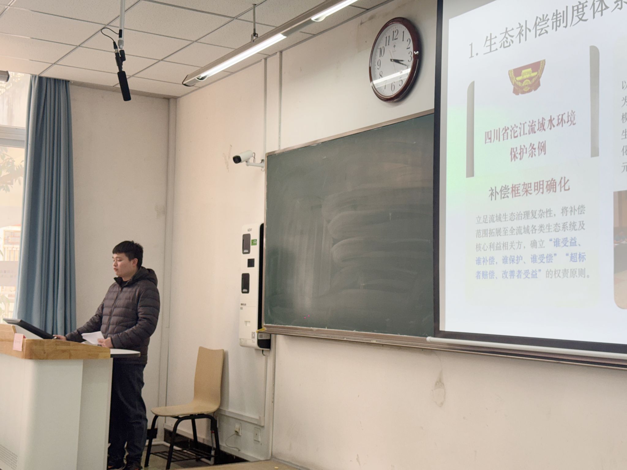 学生交流环节中,曾超伟同学以“新时代沱江流域生态补偿制度化的现状分析及对策研究”为主题,剖析流域生态补偿机制建设的痛点难点,提出兼具可行性与创新性的优化路径;余沙碧同学以“新时代阿坝州生态文明建设制度化的突出成效和创新经验”为题,分享区域生态实践的鲜活成果;王诗宇同学以“数字技术赋能生态保护补偿的内在逻辑、现实困境与破解路径”为主题,深入解读数字技术与生态保护补偿融合发展的内在机理,为破解生态补偿落地难题提供了新思路。