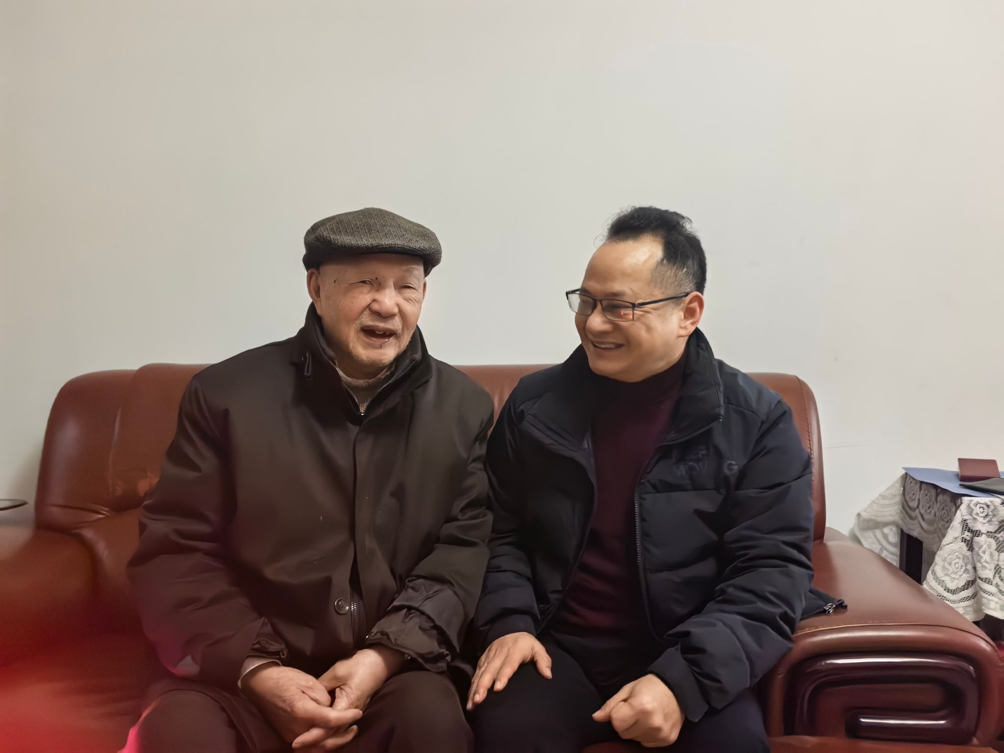 颜怀坤与李齐家促膝长谈,仔细询问他的生活起居和健康状况,和他一同回忆共事的岁月,也介绍了学院的发展现状以及近年来取得的成绩。李齐家老师今年90多岁高龄,仍精神矍铄,回忆起往昔岁月,眼中闪烁着光芒。从教数余载,李老师将毕生心血奉献给了川农马院,培养出的学生遍布各行各业,不少人已成为行业骨干。他也心系学院的发展,在了解了学院发展现状后,对学院取得的发展与成绩表示深切的祝贺与祝福。颜怀坤真切地表示对李齐家老师的感谢,正是由于他们老一辈对学院教育事业的奠基,才有了学院一步步的发展与壮大。