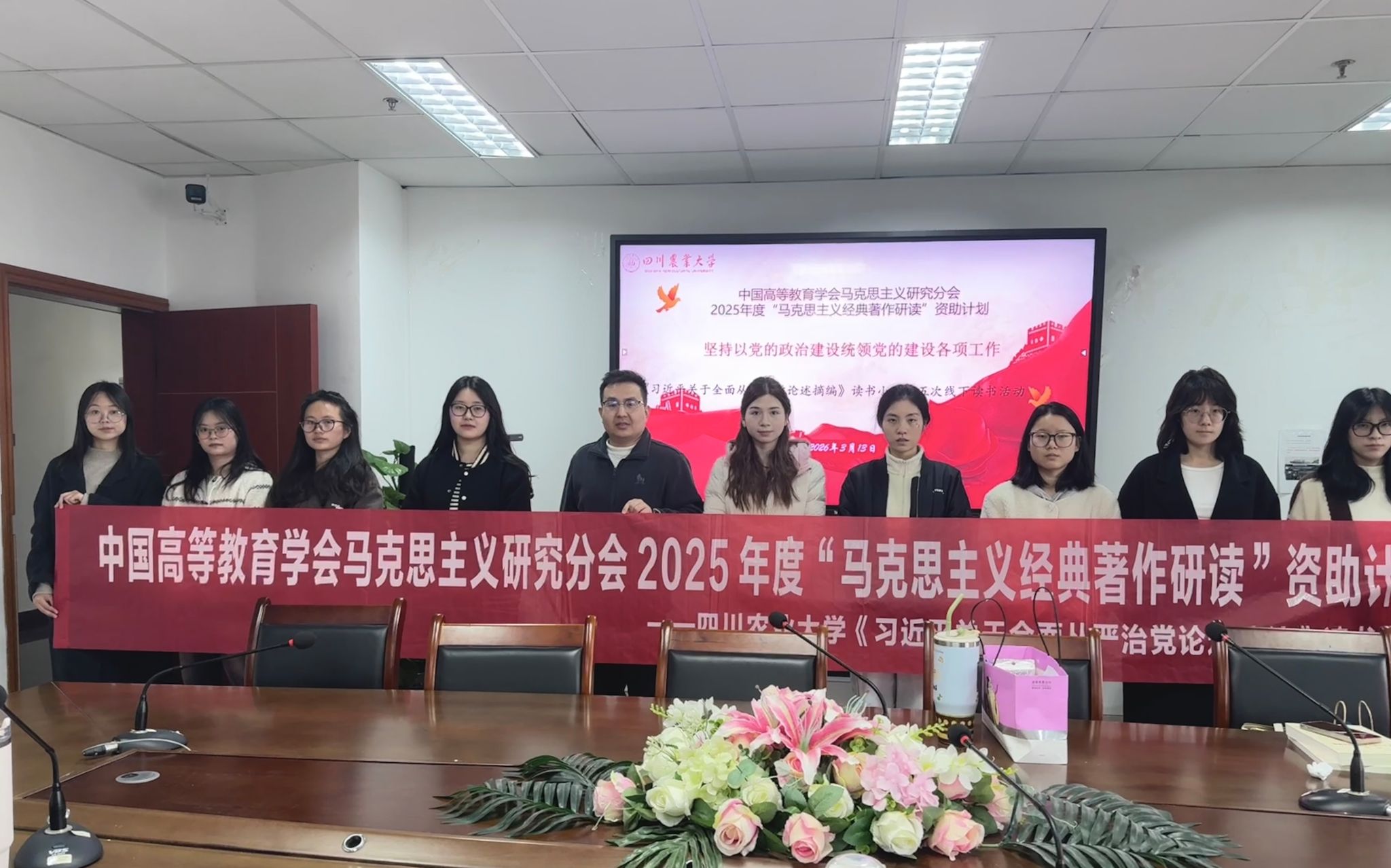 3月13日,中国高等教育学会马克思主义研究分会2025年度“马克思主义经典著作研读”资助计划--四川农业大学《习近平关于全面从严治党论述摘编》读书小组举办第5次线下读书活动。本次读书活动以“坚持以党的政治建设统领党的建设各项工作”为主题,马克思主义学院张旭老师到场指导,中国高等教育学会马克思主义研究分会周文渝、陈永仙进行线上督导,读书小组三位同学进行学习分享。