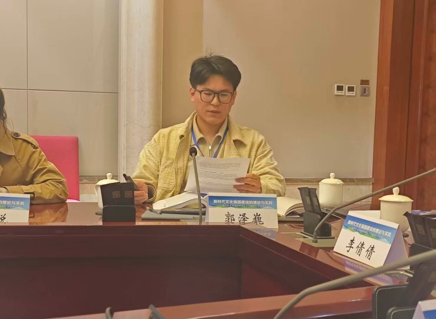在平行论坛环节,我院研究生郭泽巍同学受邀参加了分论坛四的研讨,并进行交流发言。他从恩格斯晚年关于历史唯物主义书信文本出发,就中国式现代化文化主体性所内含的以“第二个结合”为实践路径、以三重辩证统一为建构逻辑、以人类文明新形态为真理印证三个方面的内容进行阐发,充分展现了马克思主义理论研究生应有的理论素养与学术精神。