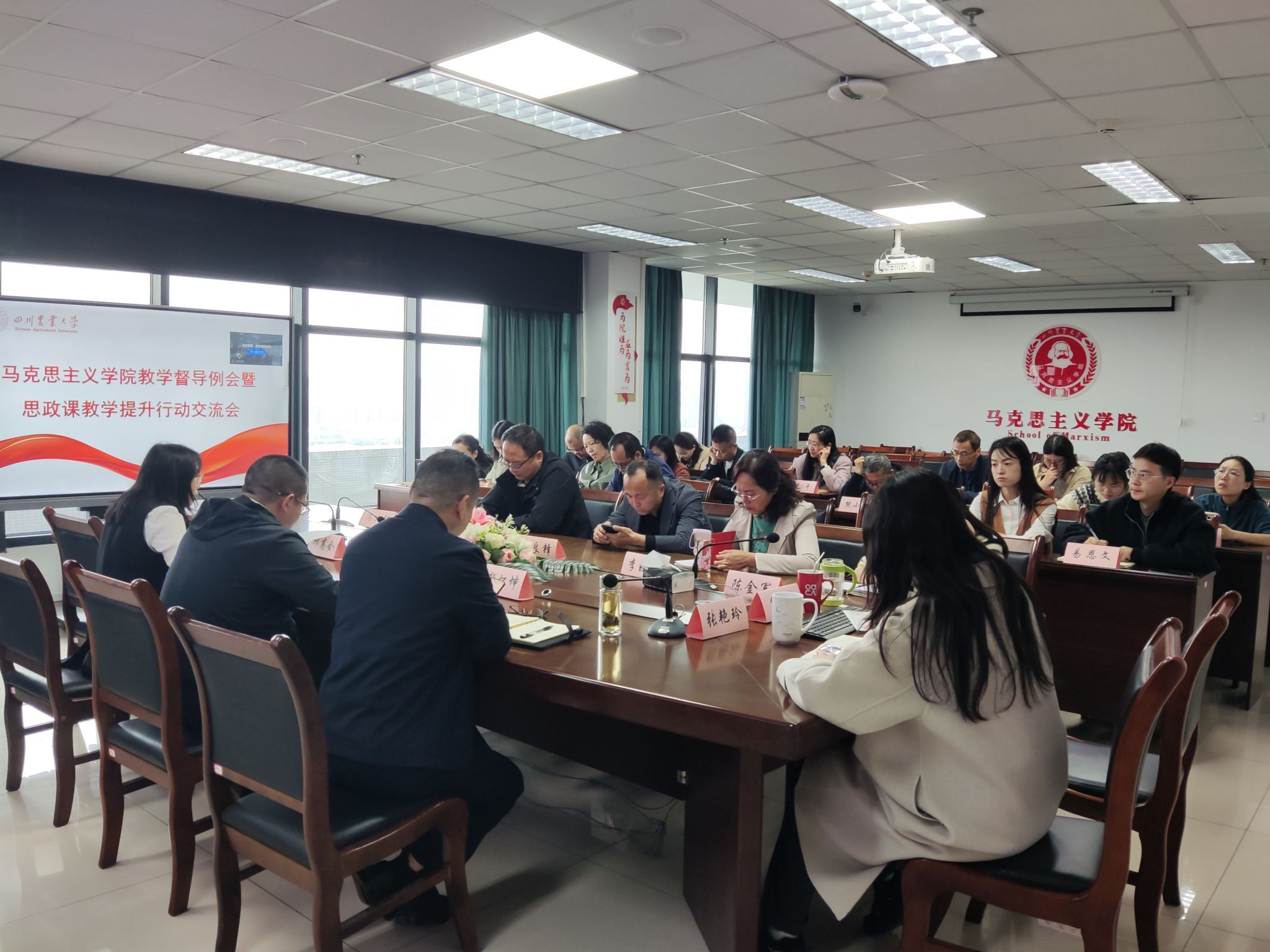 为充分发挥教学督导在思政课建设中的诊断、监督与赋能作用,系统总结近期思政课教学运行情况,交流分享教学改革经验,全面推进思政课教学提升行动走深走实,4月7日,我院召开教学督导例会暨思政课教学提升行动交流会。学院邀请教务处处长饶含兵参会,会议由学院党委书记颜怀坤主持。