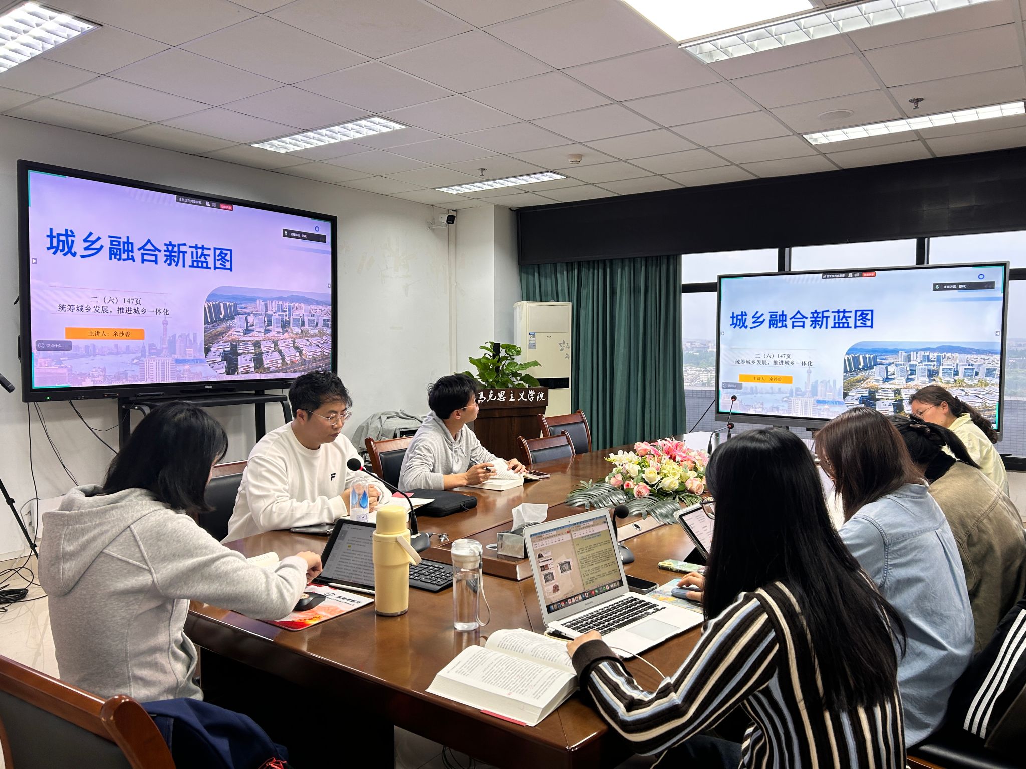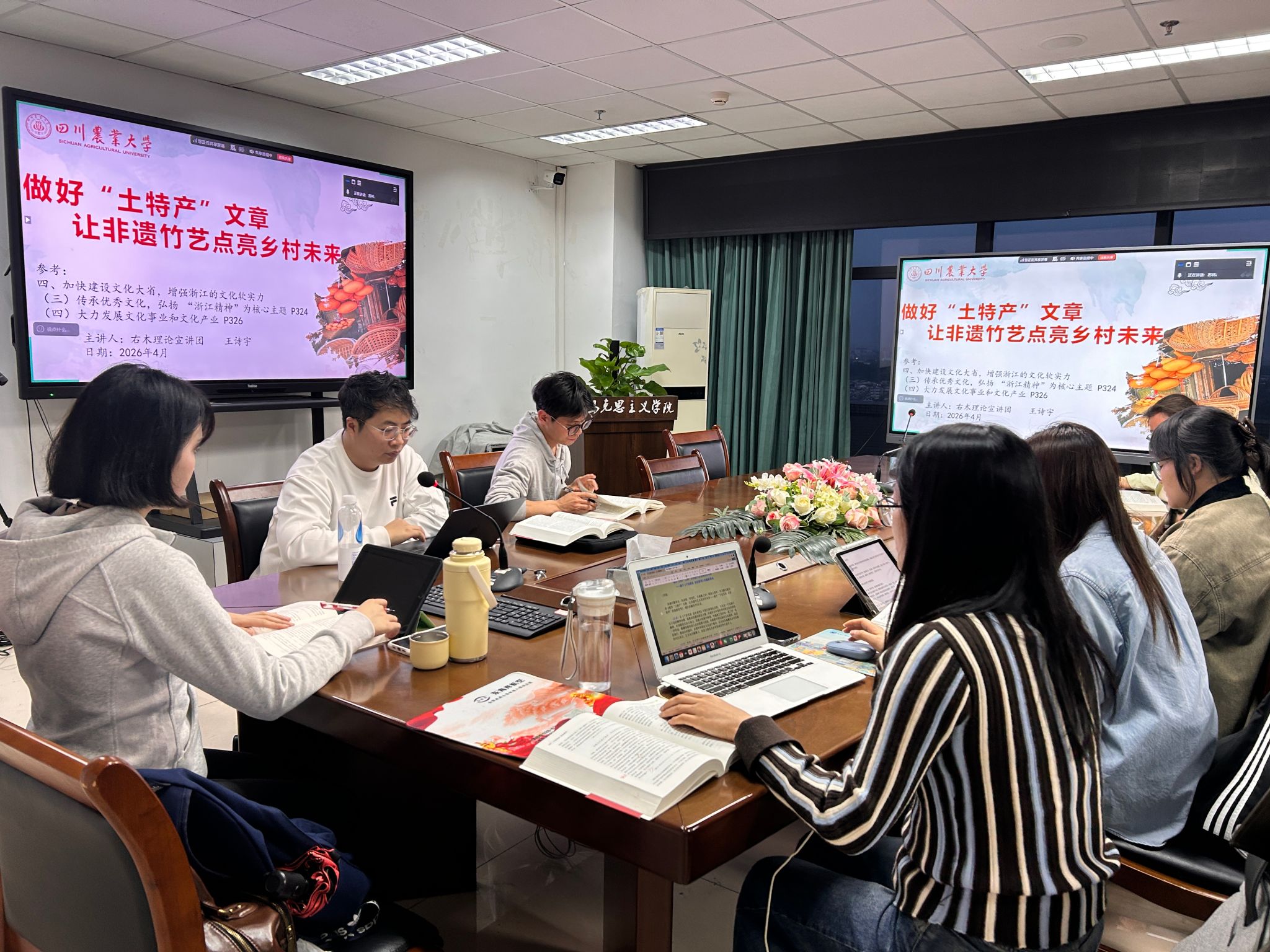 2026年4月9日,中国高等教育学会马克思主义研究分会、中国李大钊研究会2025年度“马克思主义经典著作研读”中共党史党建专项支持计划——四川农业大学“干在实处 走在前列”读书小组在七教1607举行第十次线下读书分享会。本次活动由冯义强老师指导,组长唐鸿林主持,读书小组全体成员参加,中国高等教育学会马克思主义研究分会督导员叶奕成线上参会。会议继续学习习近平总书记的著作《干在实处,走在前列——推进浙江新发展的思考与实践》。本次读书会分为成员主题分享、成员交流讨论、指导老师点评、督导员点评以及组员读书心得交流五个环节,活动开展有序,气氛热烈。
