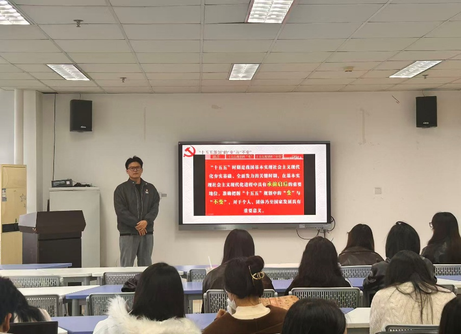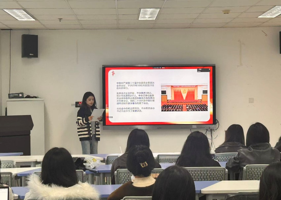 在这之后,右木理论宣讲团成员苏萌以“学习党的二十届四中全会精神”为主题进行理论宣讲。她概括了党的二十届四中全会精神的主要内容,重点分析了“十五五”时期的发展形势与总体要求,其中指出我国发展处于战略机遇和风险挑战并存、不确定难预料因素增多的时期,强调“解决好‘三农’问题是全党工作的重中之重”。此外,她系统阐述了“十五五”时期在经济社会发展层面、科技创新发展层面、对外开放层面、卫生健康和人口发展层面以及加强党的领导层面的规划部署,从不同角度结合实际情况展开分析讲解。