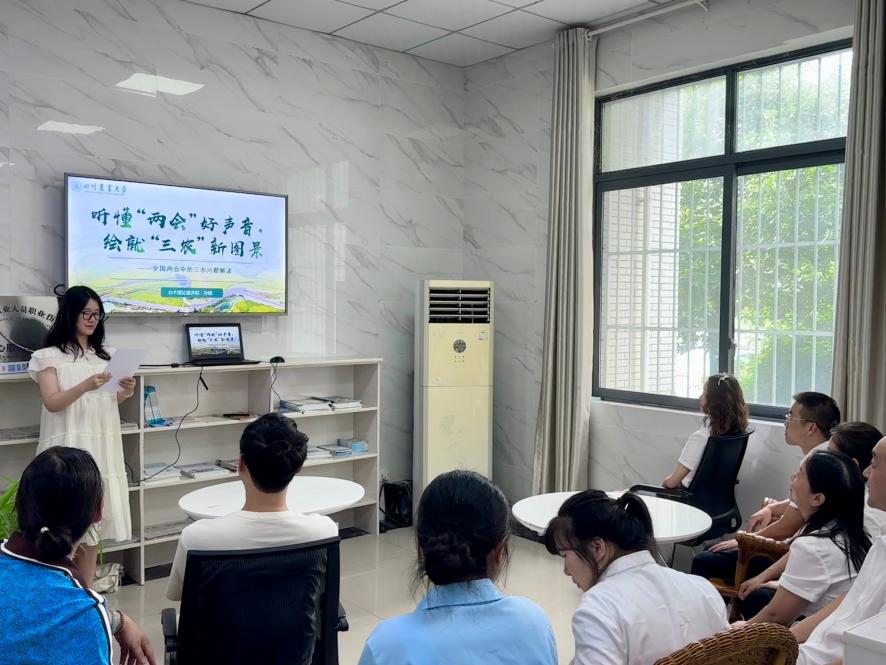 2025年8月27日,四川农业大学右木理论宣讲团成员孙媛应邀赴芦山县人力资源和社会保障局,作题为《听懂两会好声音,绘就“三农”新图景》的专题宣讲,深入解读全国两会精神,聚焦三农发展与人才保障、就业服务深度融合的现实路径。