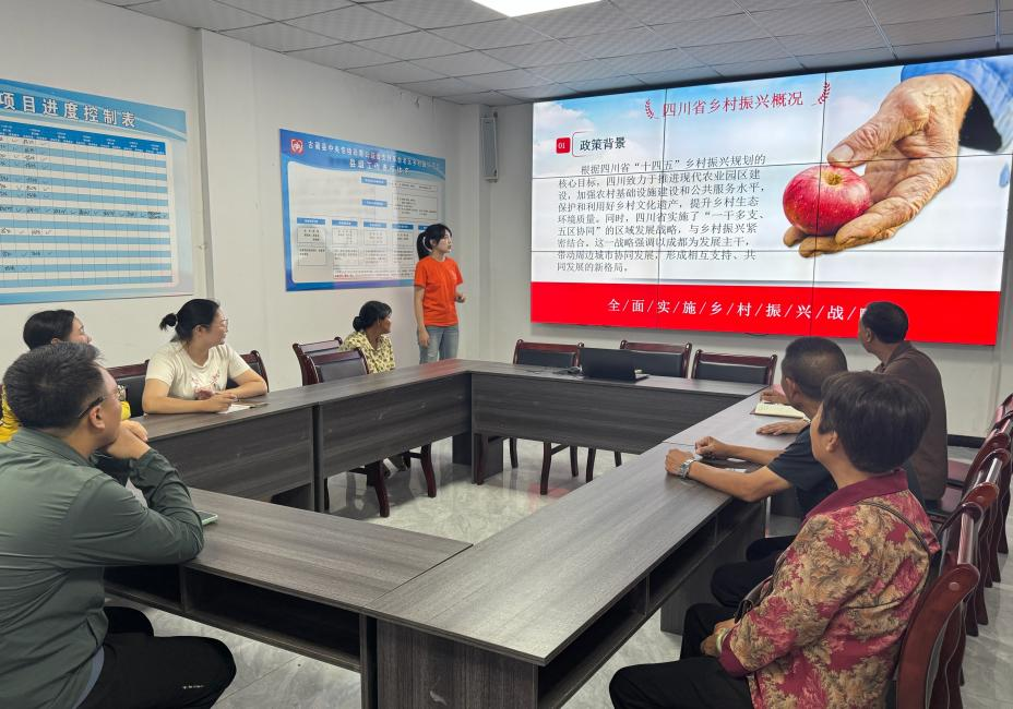 宣讲中,团队成员余沙碧首先结合“三农”政策核心,介绍四川农业省情与政策支撑体系:聚焦四川省“十四五”乡村振兴战略规划中现代农业园区建设、农村基础设施补短板等强农目标,详解“一干多支、五区协同”战略如何因地制宜赋能农业发展——以成都平原为农业主干区辐射带动周边,推动不同区域形成特色农业发展路径,为村民厘清政策与农业生产、农村发展的关联。