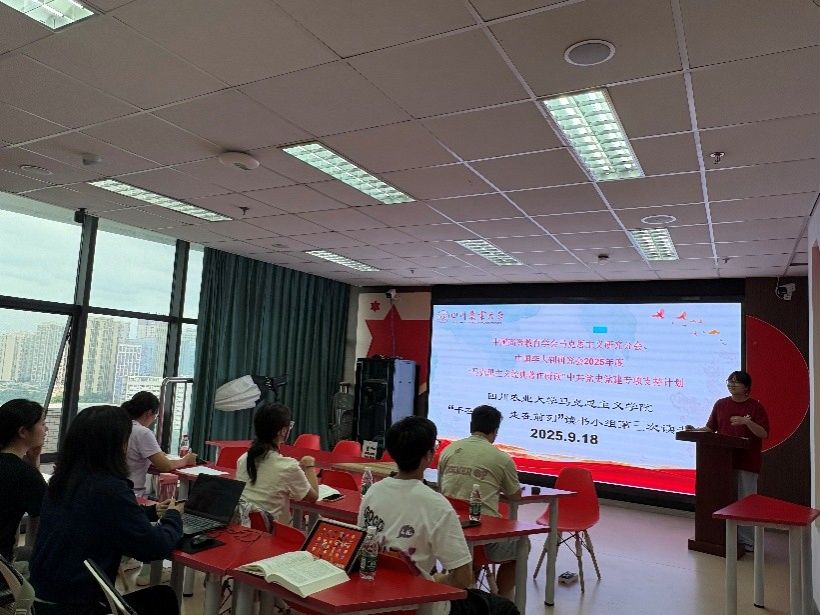 2025年9月18日,中国高等教育学会马克思主义研究分会、中国李大钊研究会2025年度“马克思主义经典著作研读”中共党史党建专项支持计划——四川农业大学“干在实处,走在前列”读书小组全体成员在七教1604举行第三次线下读书分享活动,围绕习近平总书记的著作《干在实处,走在前列——推进浙江新发展的思考与实践》的第四章内容进行讨论交流。