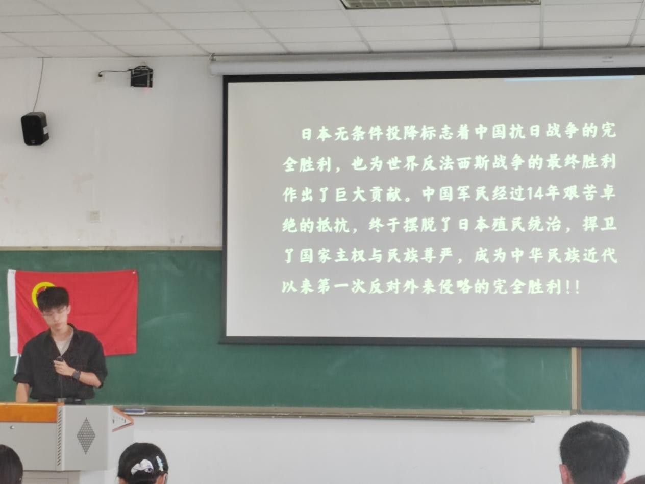 为深切缅怀革命先烈,传承和弘扬伟大抗战精神,号召青年学子踔厉奋发、勇毅前行,为以中国式现代化全面推进强国建设、民族复兴伟业而团结奋斗,2025年9月29日,四川农业大学右木理论宣讲团成员黄海桐受邀走进环境学院环境工程四个小班团支部联合举办的班团活动,开展了一场题为《铭记胜利八十载,赓续初心万里程》的专题宣讲,现场反馈良好,气氛热烈。
