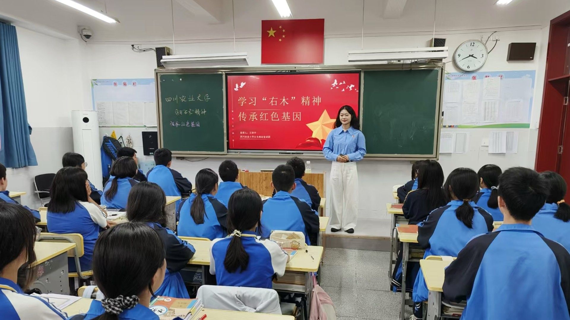 为厚植青少年红色情怀,让革命先辈精神浸润青春成长路,2025年9月30日,在国庆佳节即将到来的浓厚爱国氛围中,四川农业大学右木理论宣讲团走进四川省射洪市太和中学,为该校初三学生带来《学习“右木”精神 传承红色基因》主题宣讲,用本土红色故事点亮课堂。