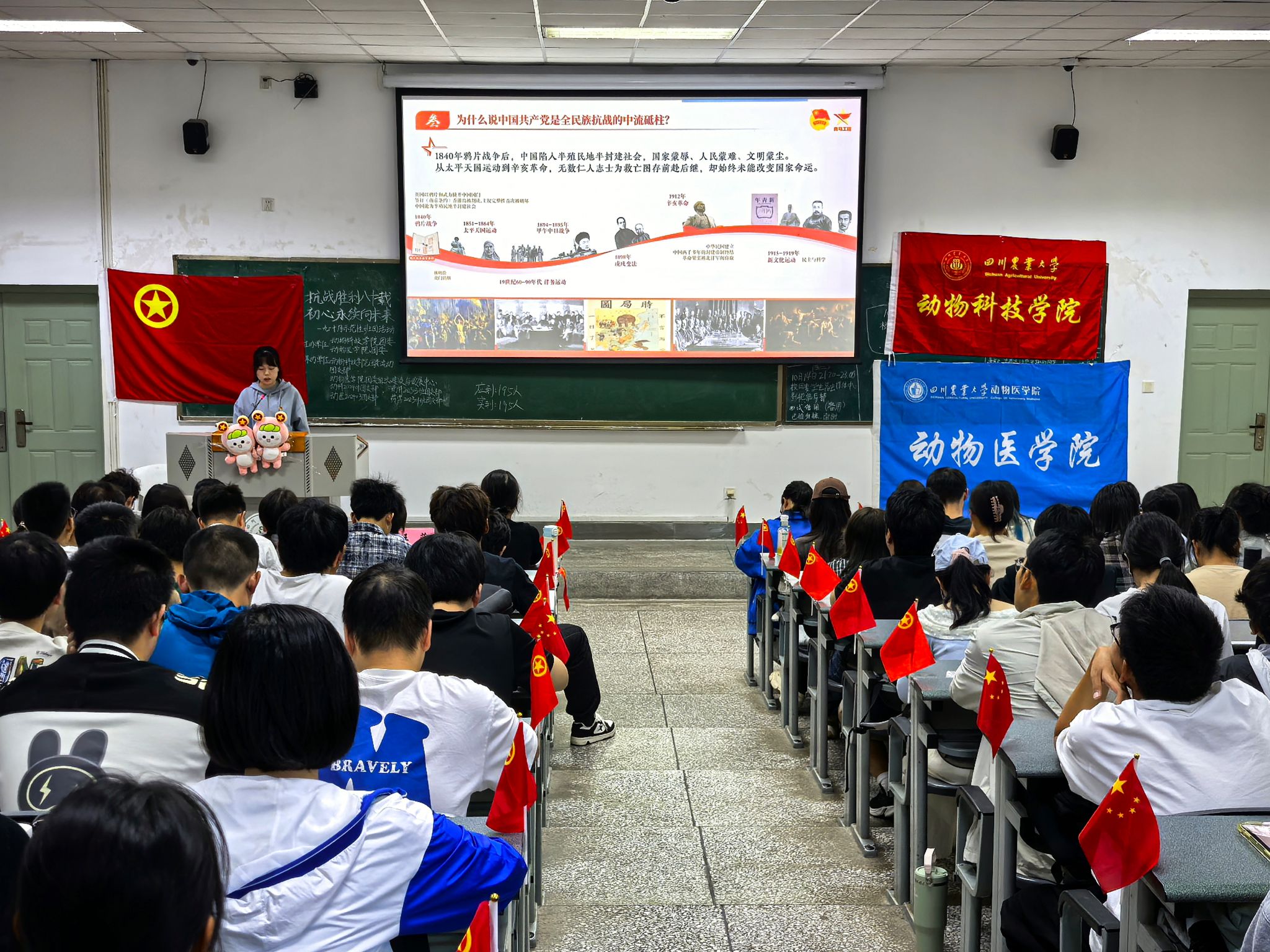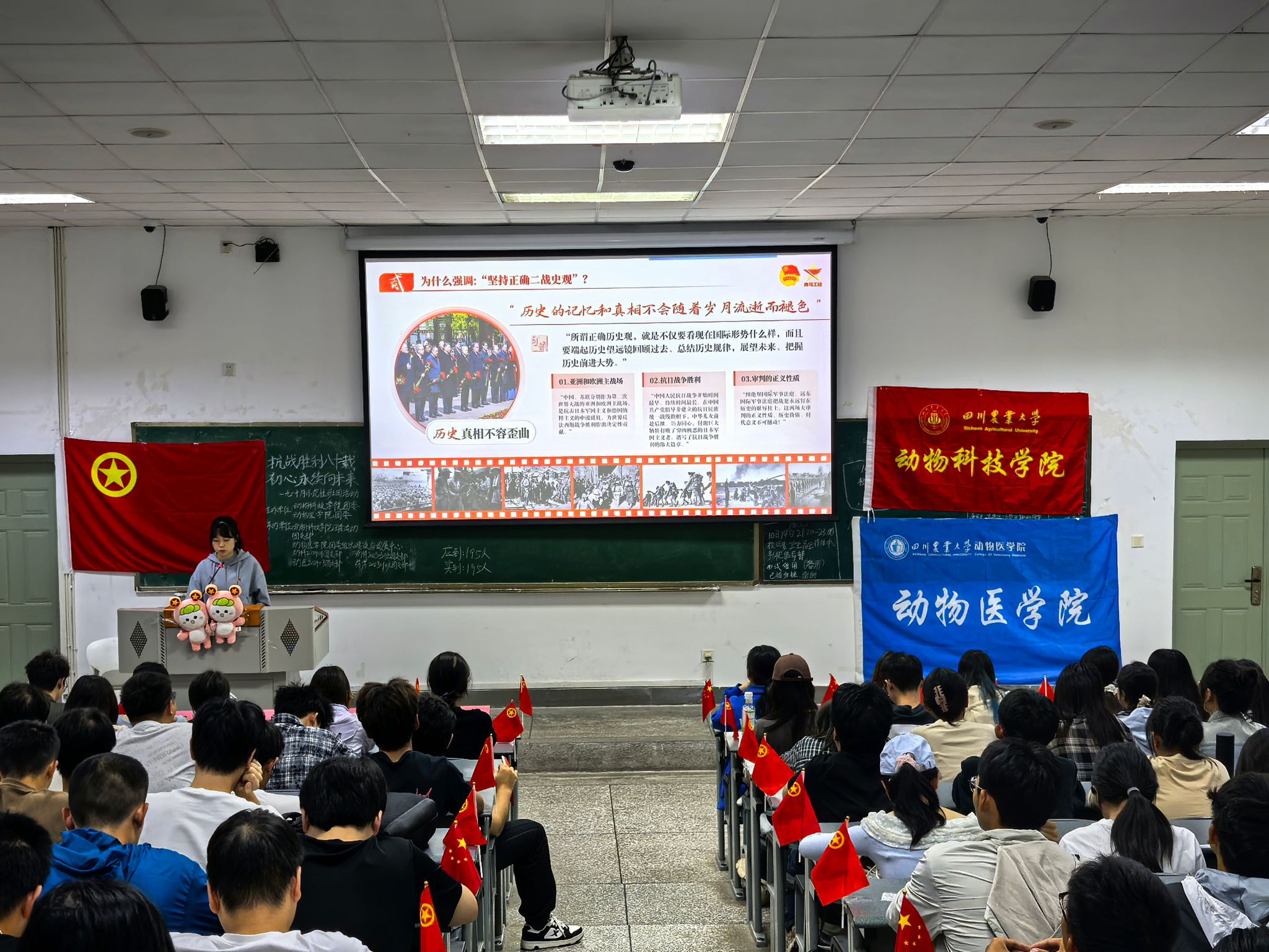 为传承伟大抗战精神,引导青年学子将专业理想与家国使命紧密结合,2025年10月14日下午,右木理论宣讲团成员谈倩走进四川农业大学动科202401班、动医202403班、动科202503班、药学202301班联合团日活动现场,为四个班级共195名学子带来以“铭记胜利八十载,赓续初心万里程”为主题的宣讲,让红色基因在涉农涉医专业青年群体中焕发新活力。