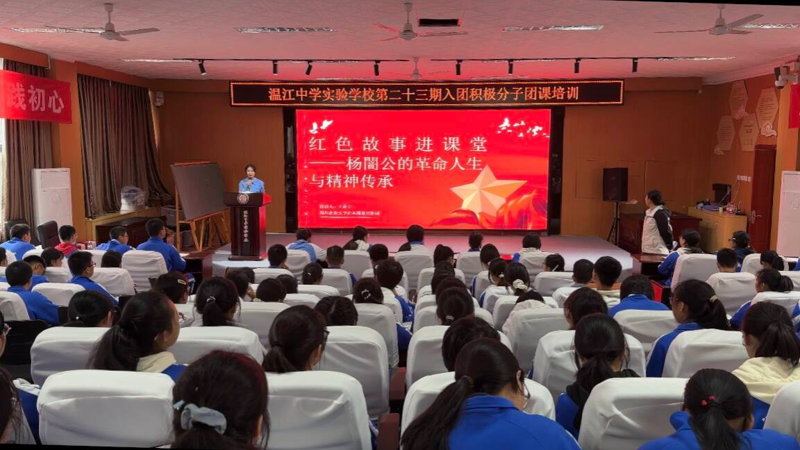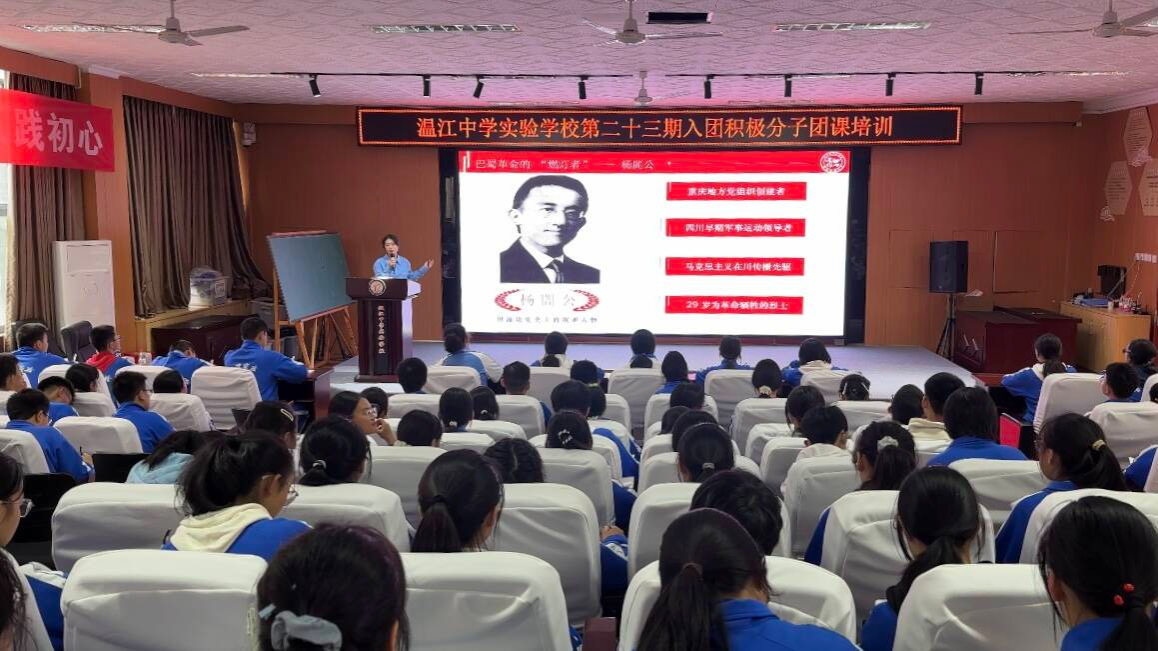“人生如马掌铁,磨灭方休!”这句铿锵有力的誓言,近日回荡在温江中学实验学校的报告厅内。为引导入团积极分子筑牢理想信念,传承红色基因,右木理论宣讲团走进该校,为80余名初三入团积极分子带来“杨闇公的革命人生与精神传承”主题宣讲,让红色火种在青春学子心中点亮。