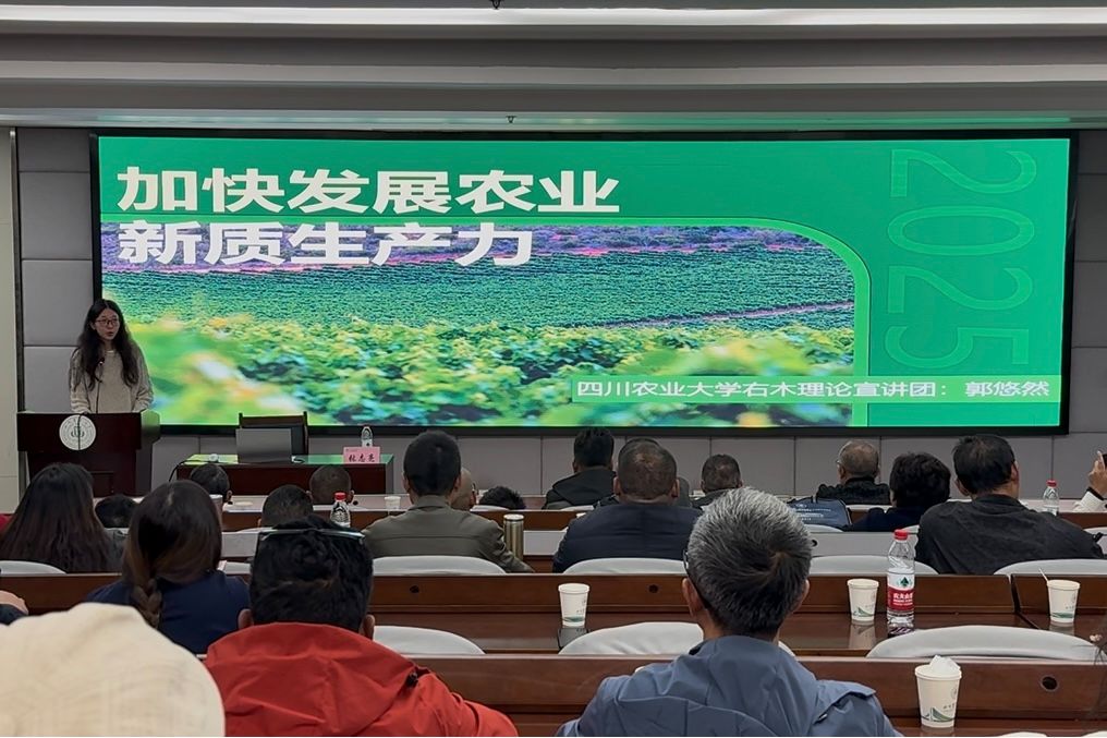 2025年11月6日上午,四川农业大学右木理论宣讲团成员郭悠然在四川农业大学一教309报告厅,为继续教育学院“农业实用人才省级示范培训班”的学员们带来了一场题为《加快发展农业新质生产力》的专题宣讲。
