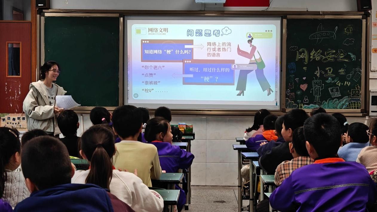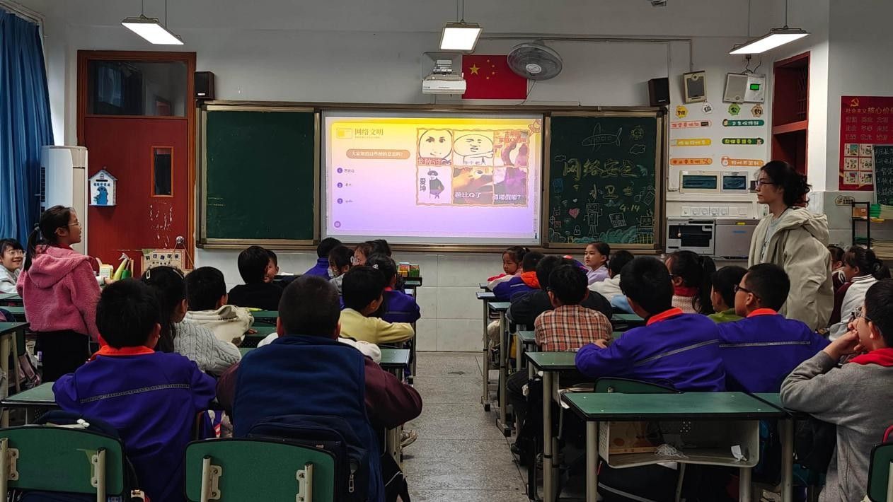 为增强青少年网络安全意识,提升网络素养,引导小学生健康上网、安全用网,2025年11月7日,四川农业大学马克思主义学院右木宣讲团成员丁逸尘走进成都市郫都区红光思源学校,为四年级的同学们带来了一场别开生面的《网络安全小卫士闯关大冒险》主题宣讲活动。本次活动以寓教于乐的形式,将网络安全知识融入趣味闯关环节,在孩子们心中播下了网络安全的种子。