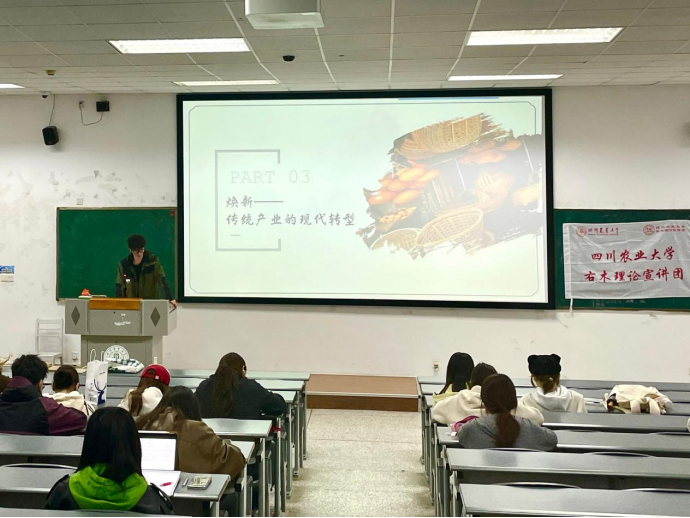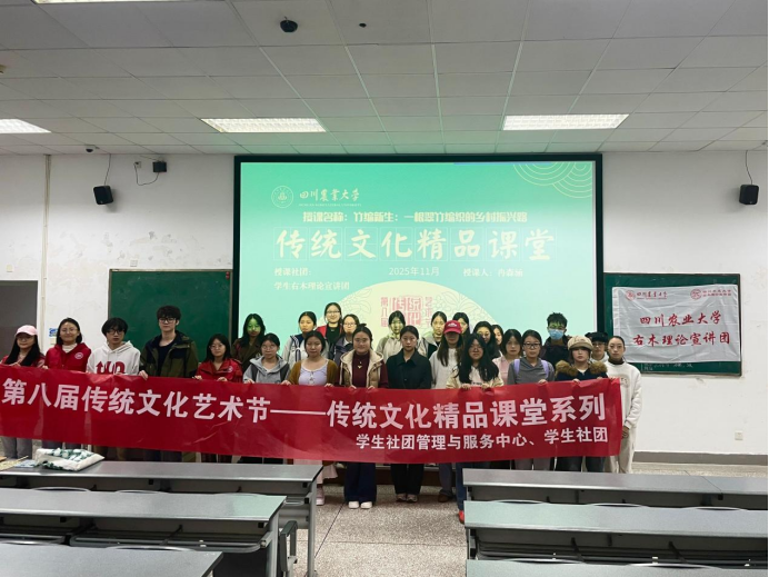 “做好‘土特产’文章,绘就乡村振兴新画卷。”习近平总书记的殷切期望,近日在四川农业大学的报告厅中回响。为引导青年学子深入了解乡村振兴战略,传承中华优秀传统文化,右木理论宣讲团于2025年11月10日走进四川农业大学校园,为百余名本科生带来“竹编新生——做好‘土特产’文章,让非遗竹艺点亮乡村未来”主题宣讲,让非遗竹编在青春视野中焕发新生。