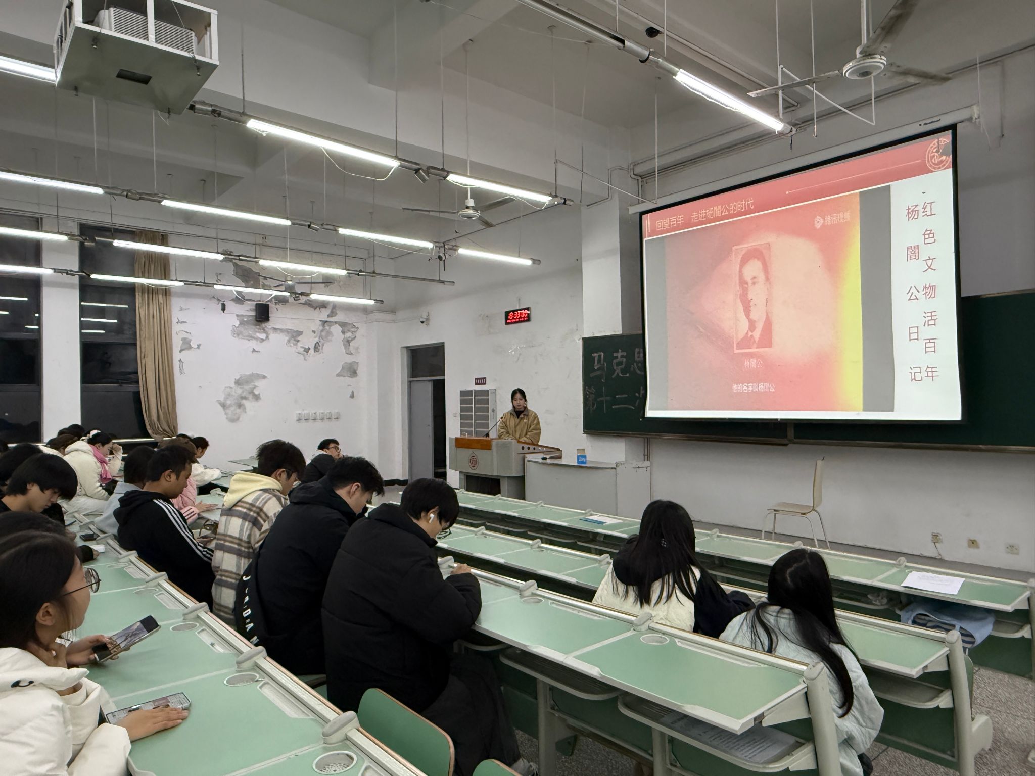 11月23日下午,右木理论宣讲团成员熊小洋在成都师范学院为马克思主义学院学生作了题为《从爱国青年到革命先锋——杨闇公烈士的革命人生与精神传承》的主题宣讲。