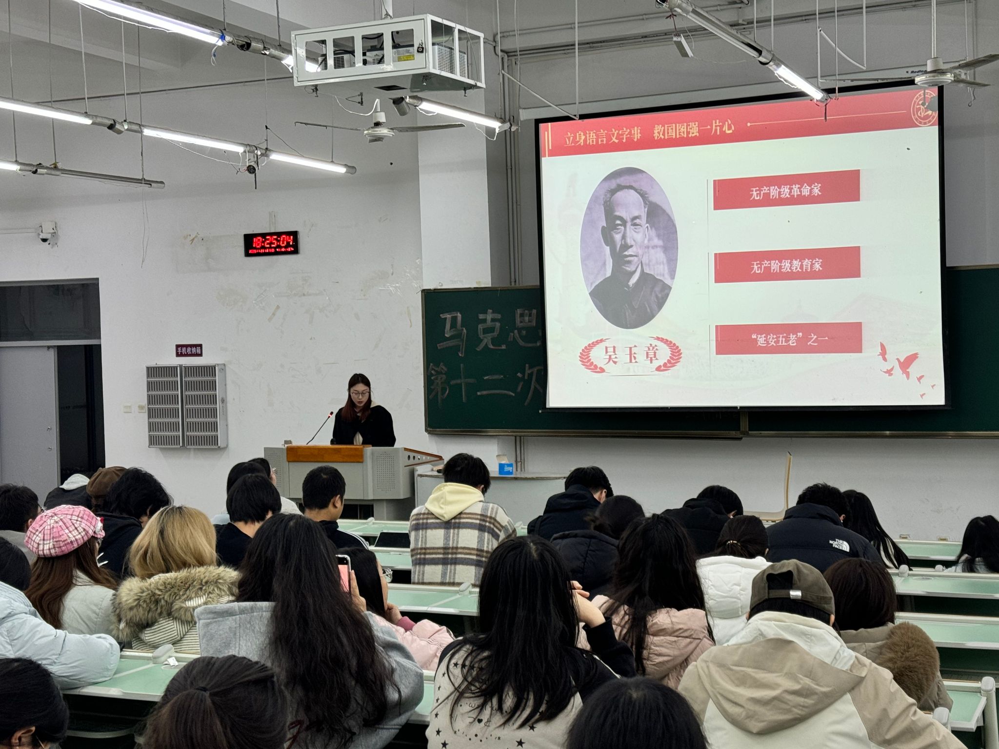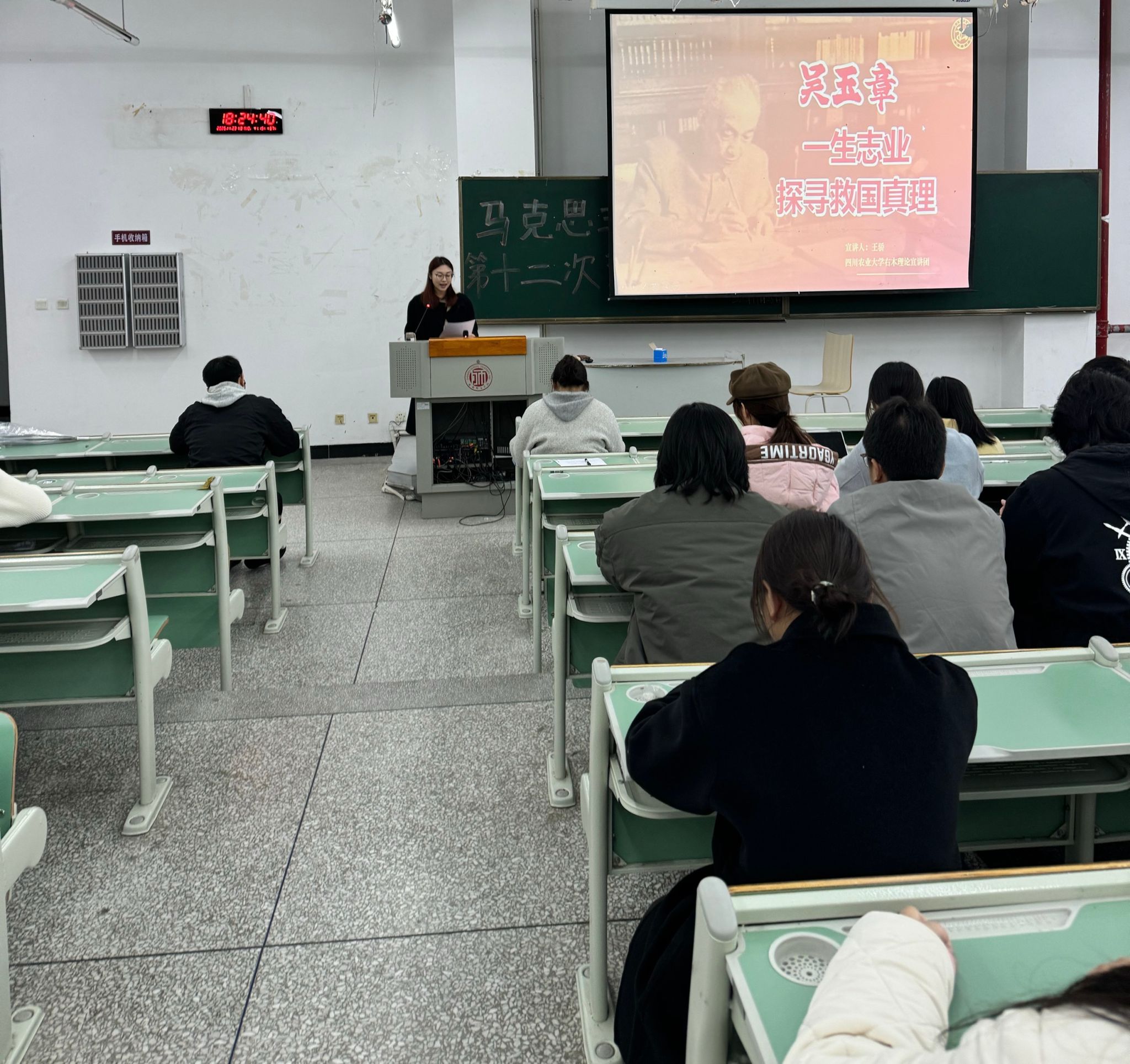 为传承红色基因、弘扬革命精神,引导青年学生坚定理想信念,11月23日,四川农业大学右木理论宣讲团讲师王骄应邀赴成都师范学院,为马克思主义学院学生带来了一场题为《吴玉章:一生志业,探寻救国真理》的宣讲。本次活动旨在通过讲述无产阶级革命家、教育家吴玉章同志的光辉历程,激励青年学子铭记历史、勇担使命。