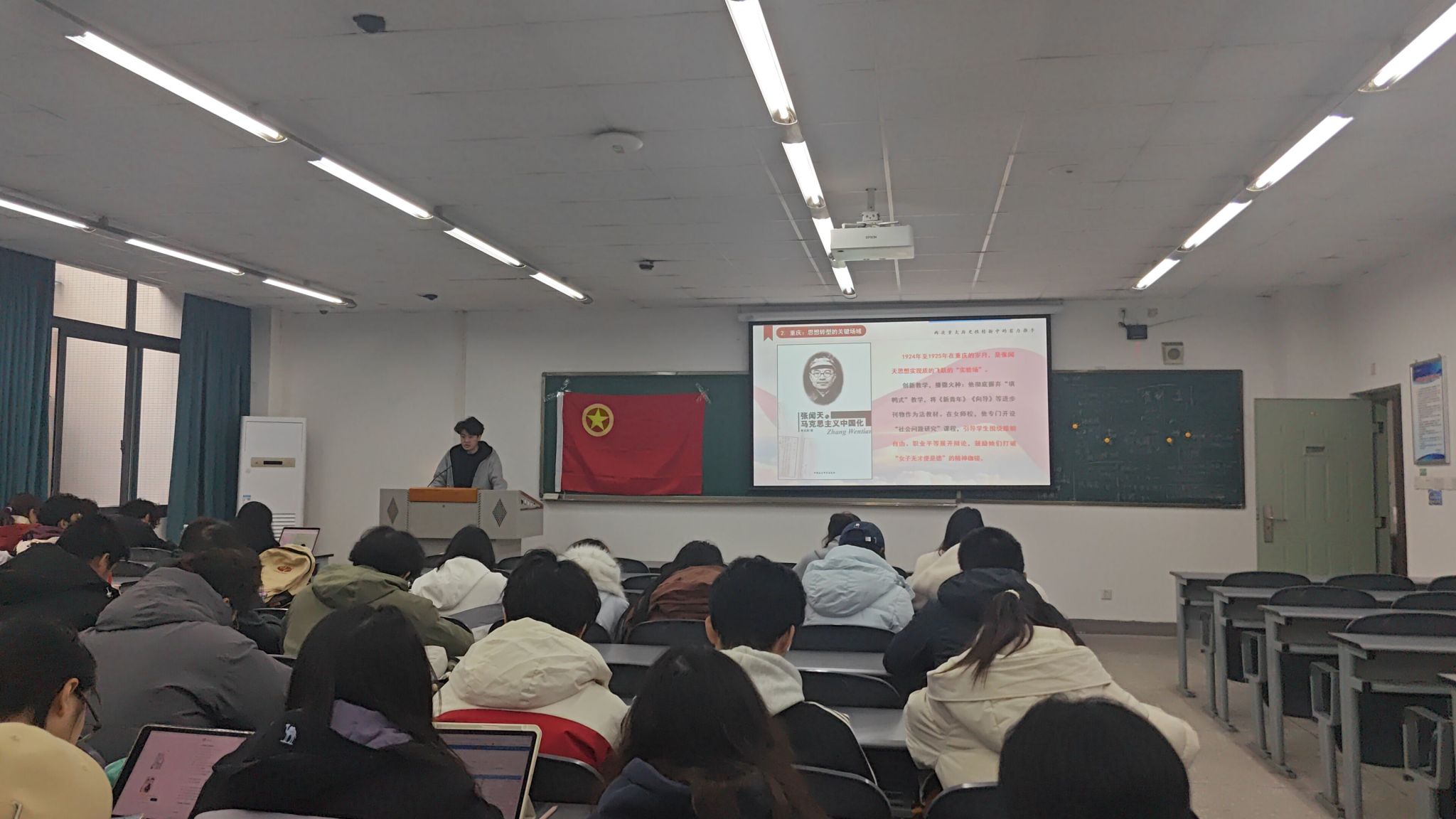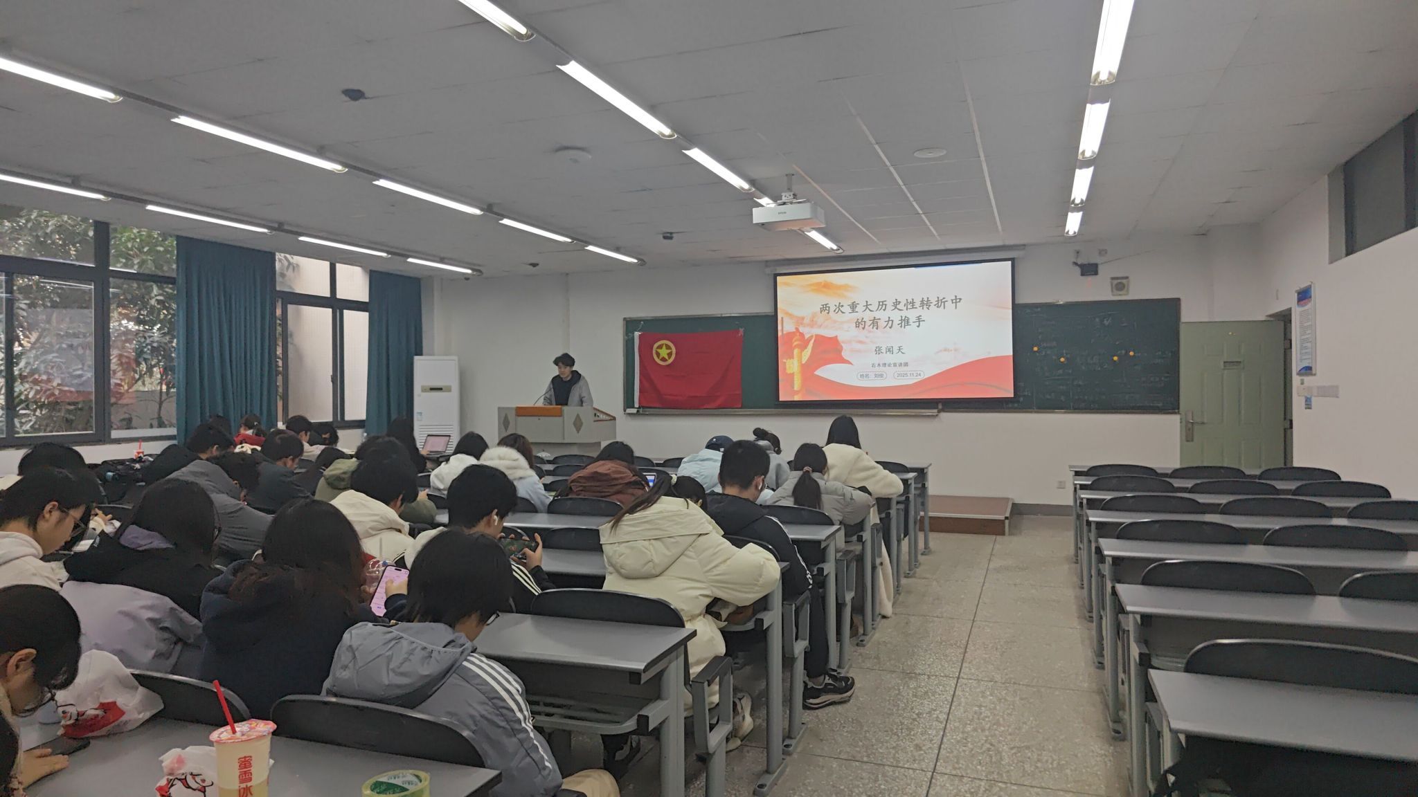 为充分发挥优秀人物的榜样引领作用,激发我校青年的学习热情与奋斗动力。2025年11月25日,右木理论宣讲团成员刘俊走进环境科学202401、202402、202403联合班团活动,为50名同学带来《张闻天:两次重大历史性转折中的有力推手》主题宣讲,推动历史人物精神传承,培养青年兴农人的使命担当。