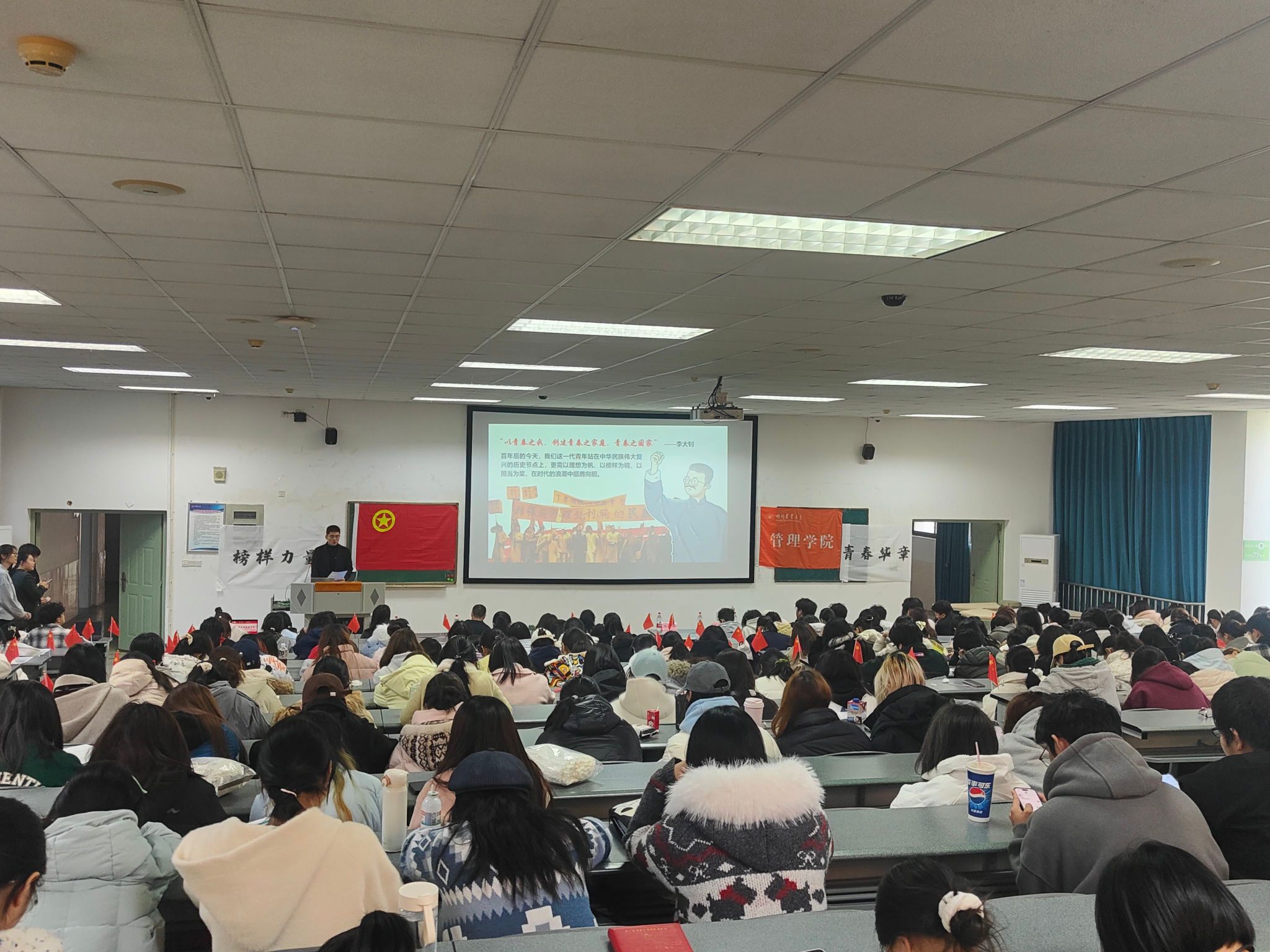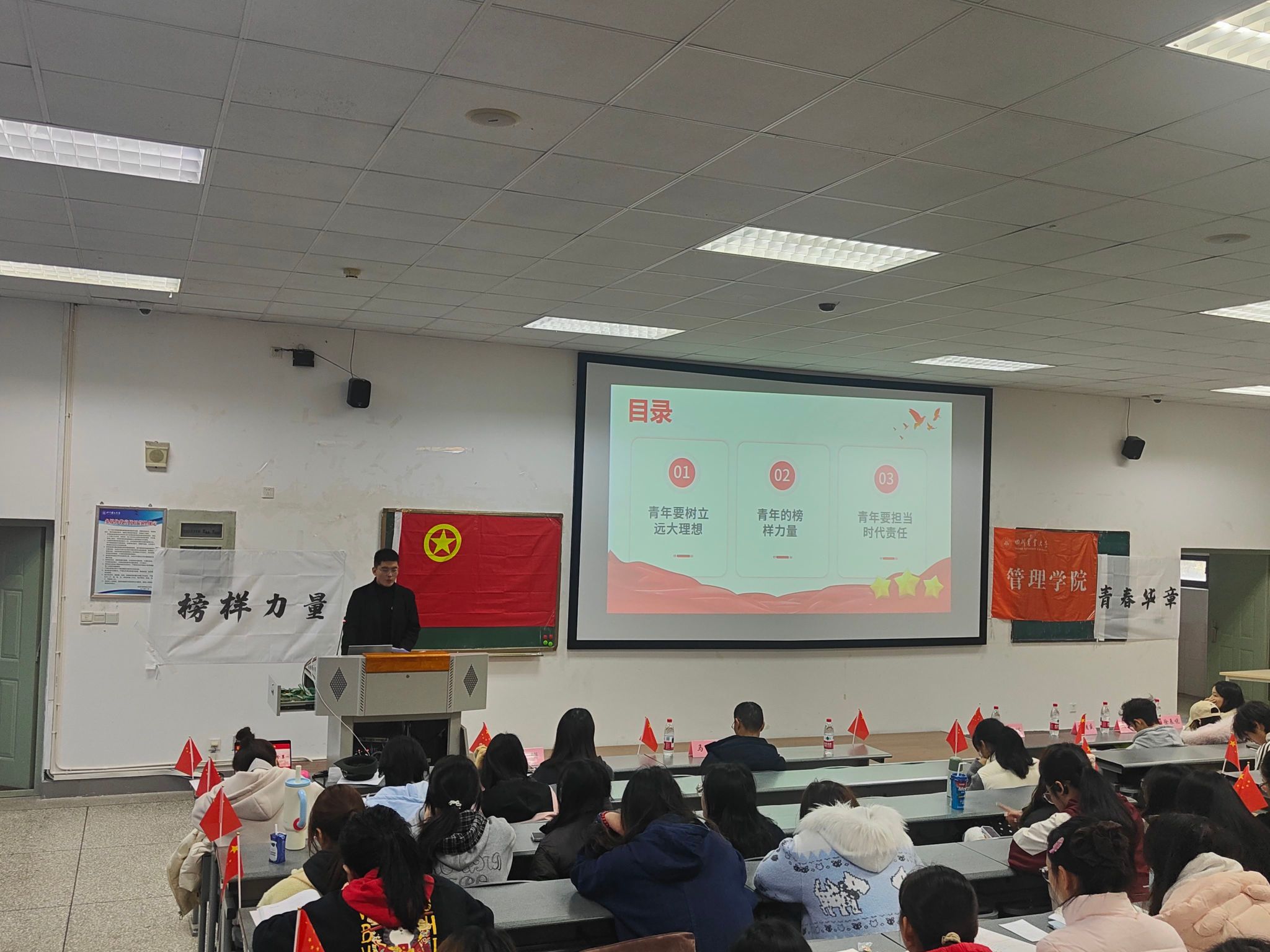 2025年12月2日,右木理论宣讲团成员王嘉祺以“青春挺膺共担当”为核心,为四川农业大学管理学院财务202402班等六个团支部的240名学子开展宣讲,带领同学们在榜样故事中感悟初心使命,在时代号召中明确奋进方向。