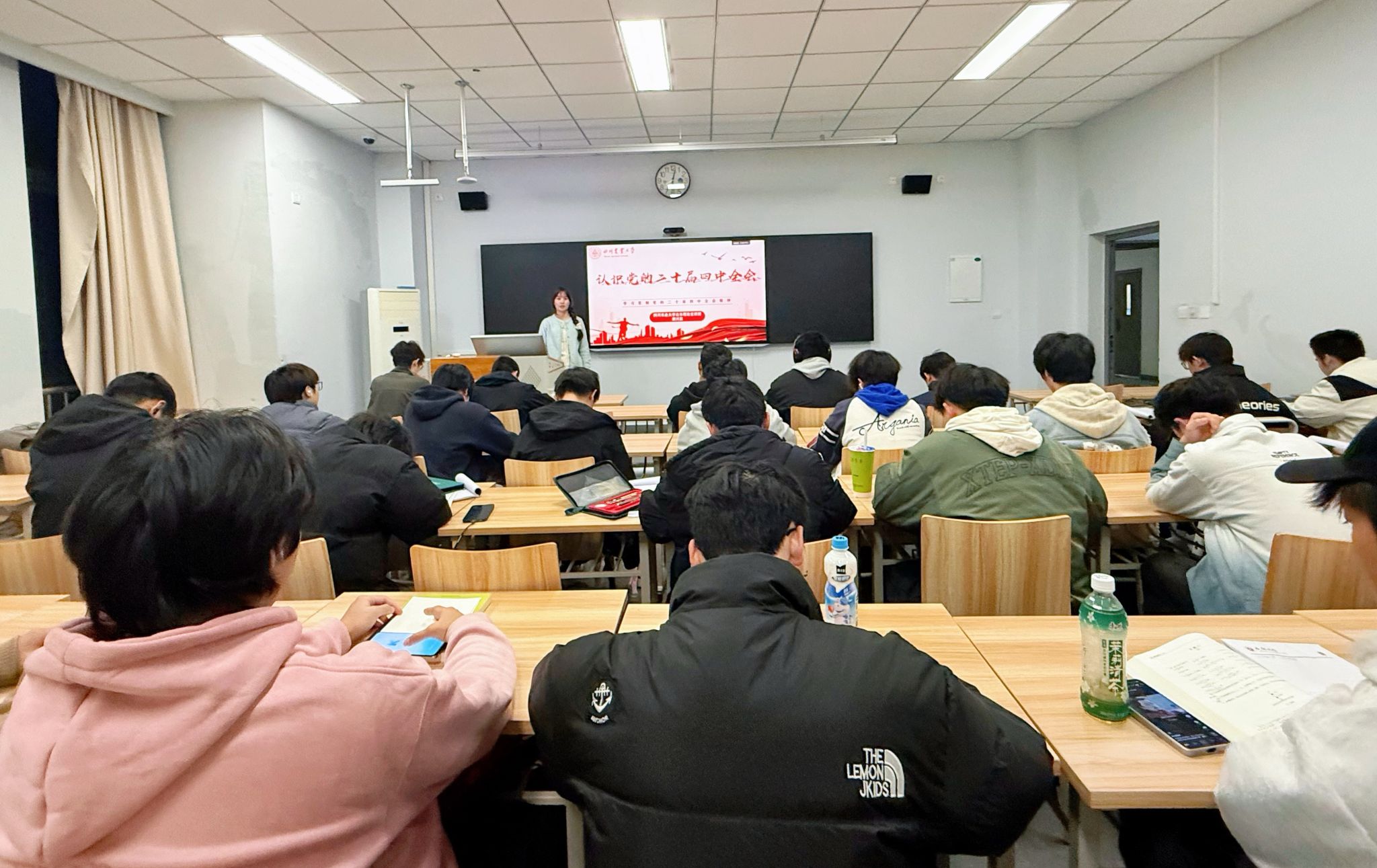 为深入学习贯彻党的二十届四中全会精神,引导青年学子将个人理想与国家发展紧密结合。2025年12月3日,右木理论宣讲团成员龚兴笛走进成都大学机械工程学院,面向车辆工程专业31名同学开展题为《认识党的二十届四中全会》的理论宣讲。