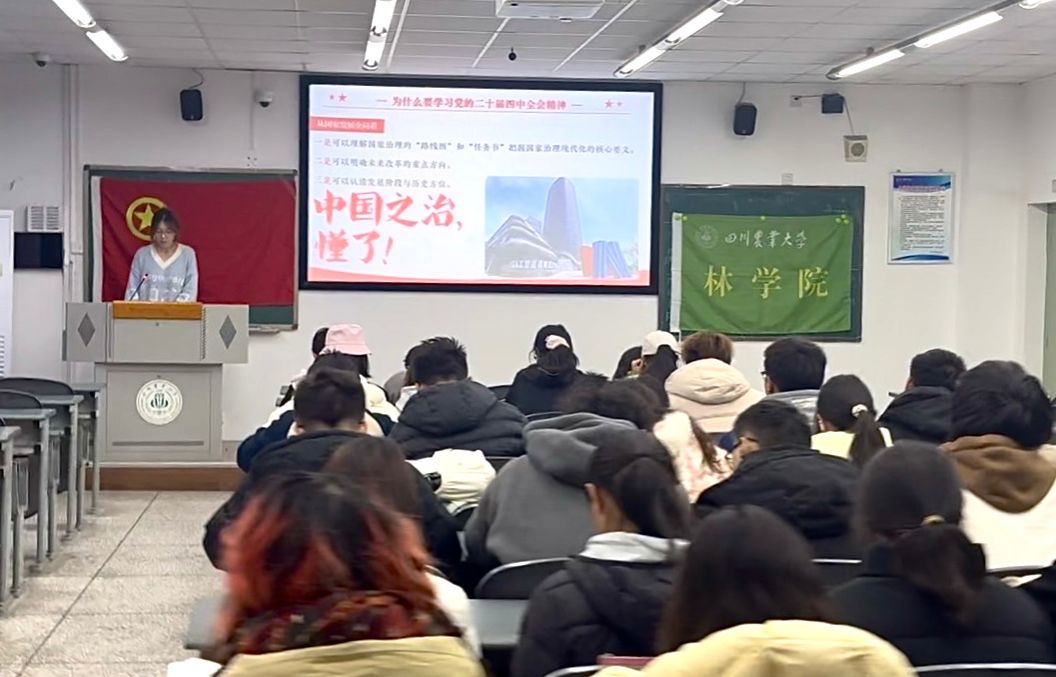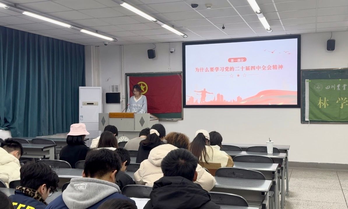 为推动党的二十届四中全会精神精准滴灌青年学子,引导农林院校学生找准个人发展与国家战略的结合点,12月11日,四川农业大学右木理论宣讲团成员勾佳凝面向林学202404班与林学202405班全体同学开展专题宣讲,以生动解读、精准阐释助力青年学子深学细悟全会精神,凝聚成长奋进力量。