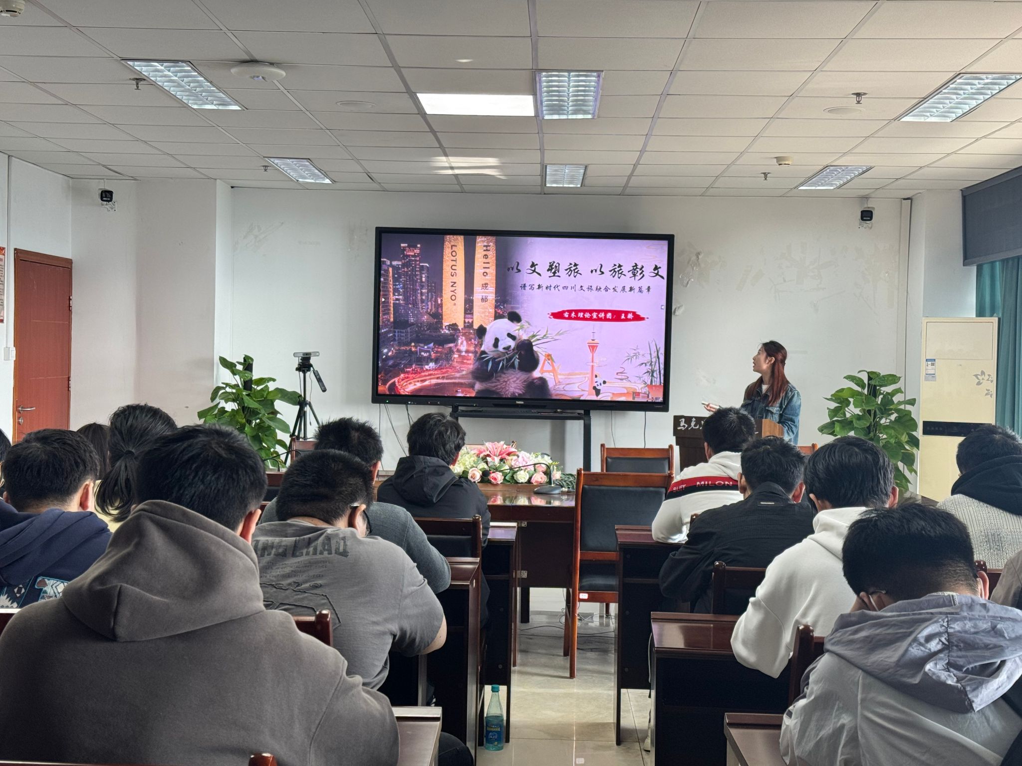 为深入学习贯彻习近平文化思想,引导青年学子读懂四川文旅融合发展蓝图,近日,四川农业大学右木理论宣讲团成员王骄面向本科生开展“以文塑旅、以旅彰文,谱写新时代四川文旅融合发展新篇章”主题宣讲活动,带领同学们在理论与实践中感悟巴蜀文旅魅力。