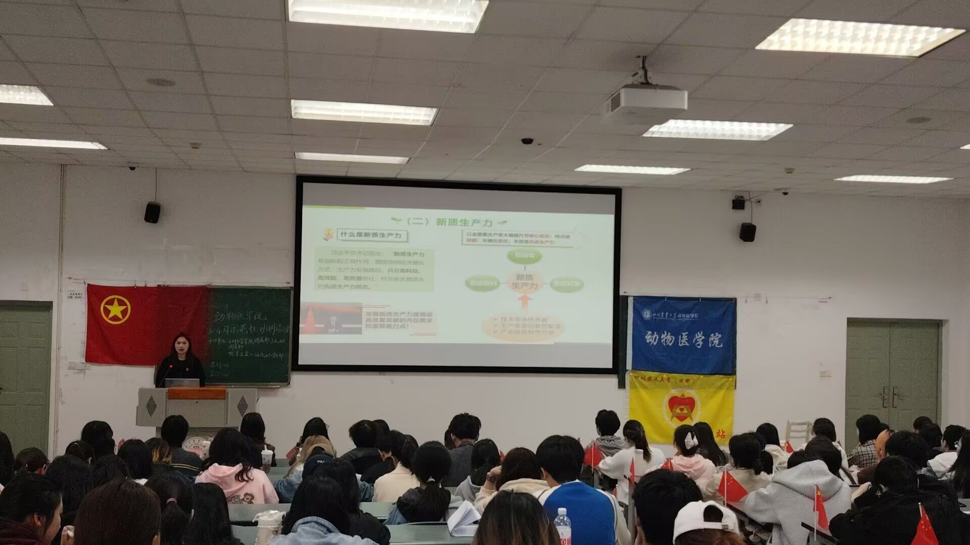 为引导青年学子把握农业现代化发展前沿,3月31日,四川农业大学右木理论宣讲团成员任小雨走进动物医学院团支部,以“加快发展农业新质生产力”为主题,为本科生带来一场理论与实践紧密结合的宣讲活动。本次活动旨在通过解读农业新质生产力的内涵、意义与发展路径,激励广大学子厚植“三农”情怀,勇担强农兴农使命。