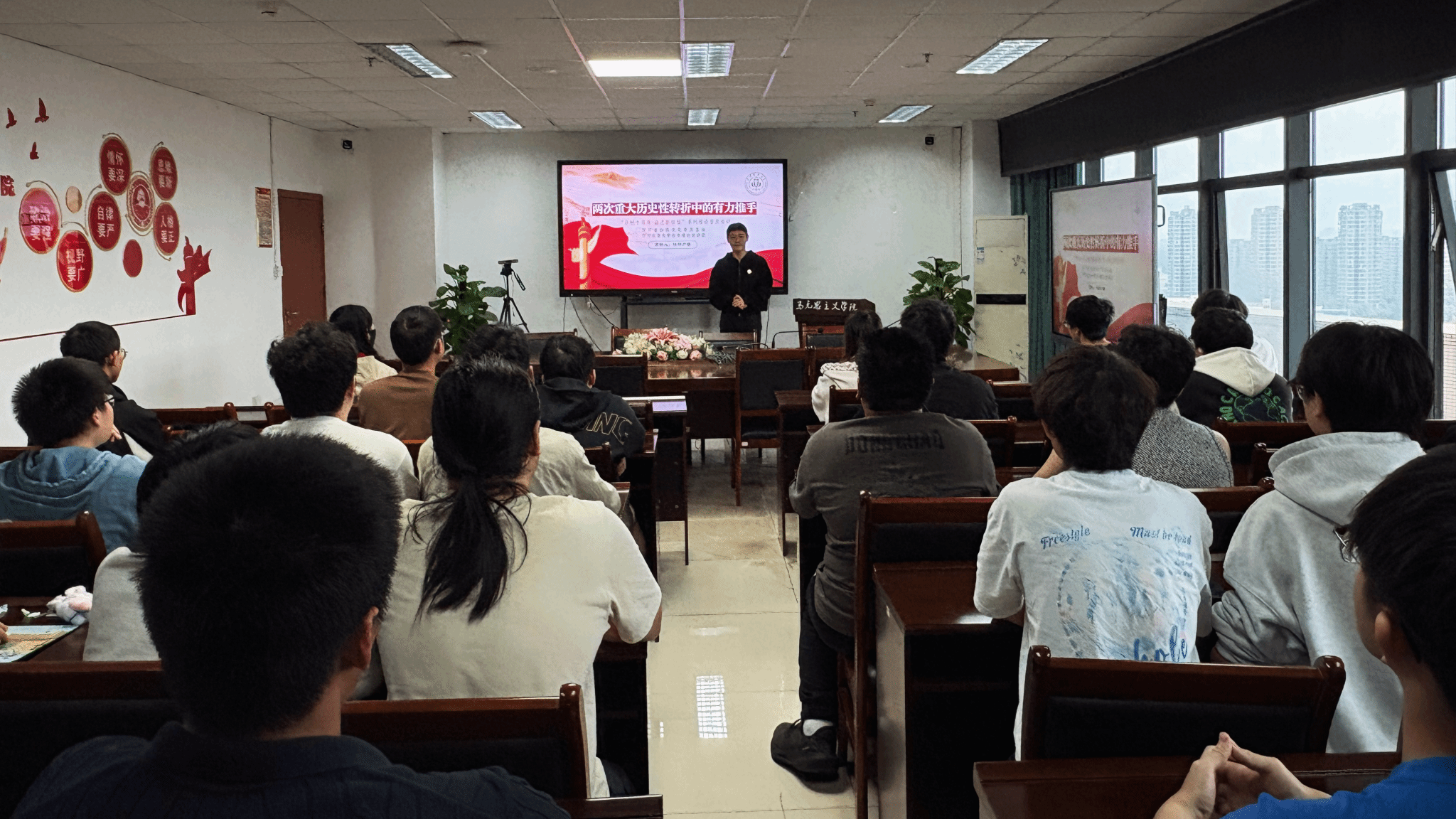 活动现场,张郑力攀以时间为轴,聚焦遵义会议与抗日民族统一战线两大历史转折点,生动再现了张闻天同志在重庆时期带领学生深入工厂调查与传播革命真理的早期探索;并重点讲述了他在遵义会议上所作的“反报告”以及在革命危机中力挽狂澜的关键作用;随后,带领同学们回顾张闻天在瓦窑堡会议和西安事变中推动建立抗日民族统一战线所展现的非凡战略担当,深刻诠释了一代共产党人“不唯上、不唯书、只唯实”的崇高精神底色。
