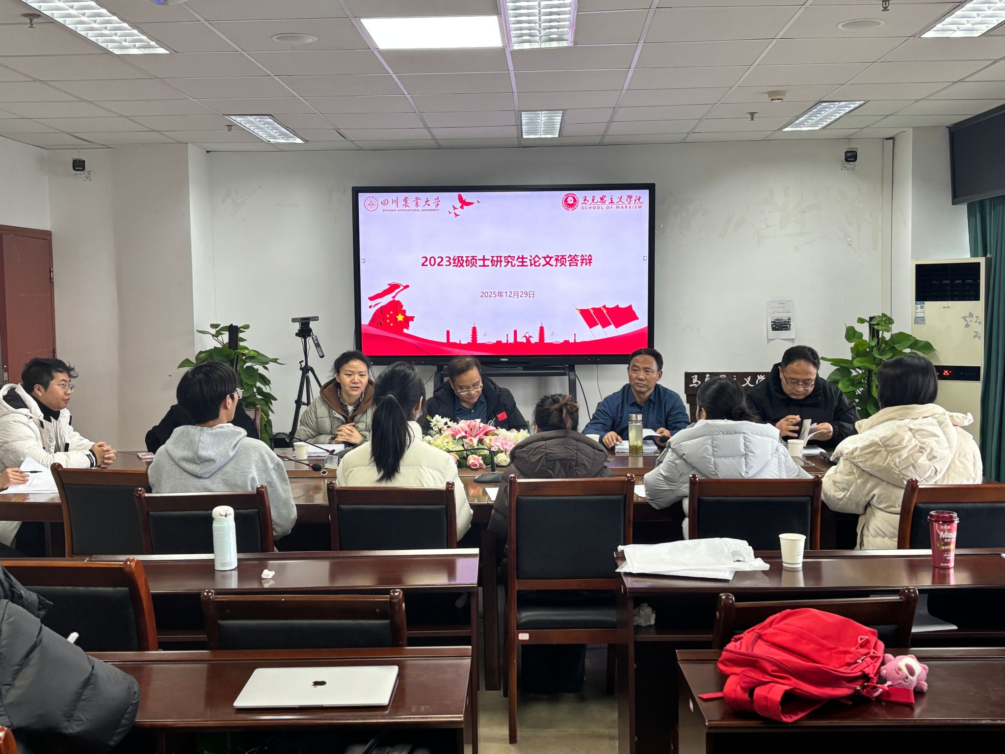 12月29日,四川农业大学马克思主义学院中国近现代史基本问题研究二级学科2023级硕士研究生毕业论文预答辩在西康楼1607会议室顺利举行。答辩委员会由四川大学马克思主义学院冯兵教授担任主席,成员包括四川农业大学马克思主义学院张祖龑教授、张强副教授、杨志钢副教授、杨珩副教授,尚爽老师为答辩秘书。2023级全体硕士研究生参加此次预答辩,2025级研究生到场旁听学习。